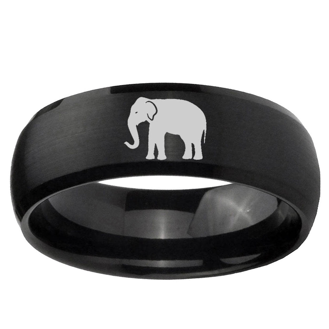 Intruding 5, 8mm Elephant Dome Brush Black Tungsten Carbide Engagement Ring . Offer in both 5mm and 8mm band width brush black plated finished from size 4 to 14