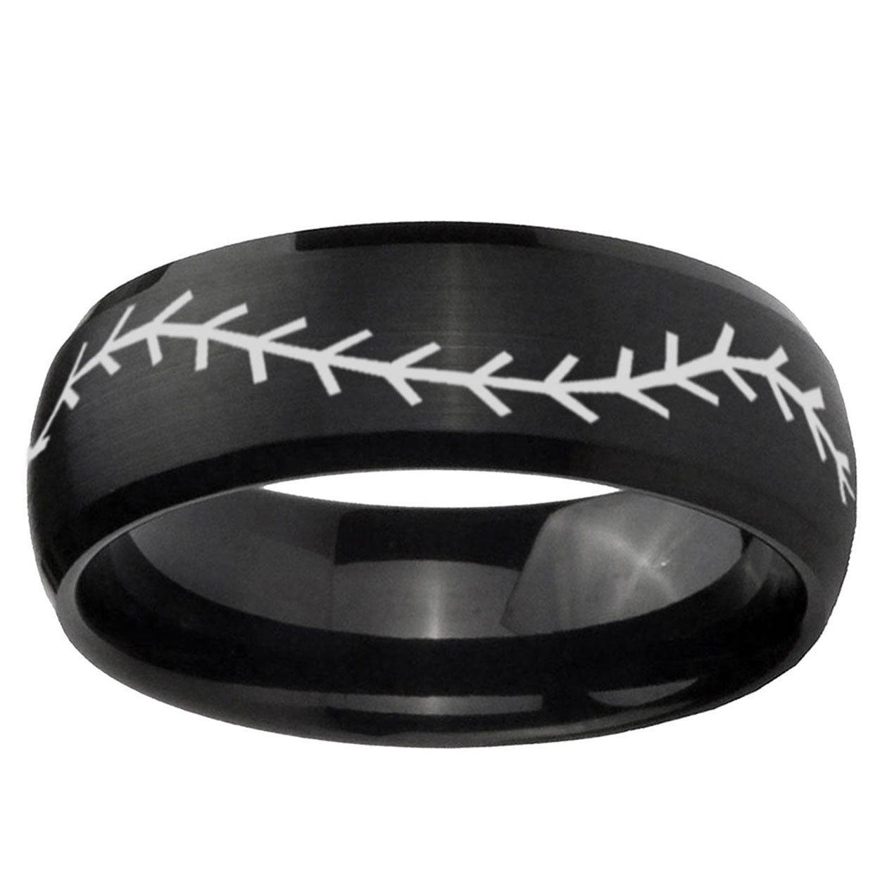 Intruding 5, 8mm Baseball Stitch Dome Brush Black Tungsten Carbide Mens Ring . Offer in both 5mm and 8mm band width brush black plated finished from size 4 to 14
