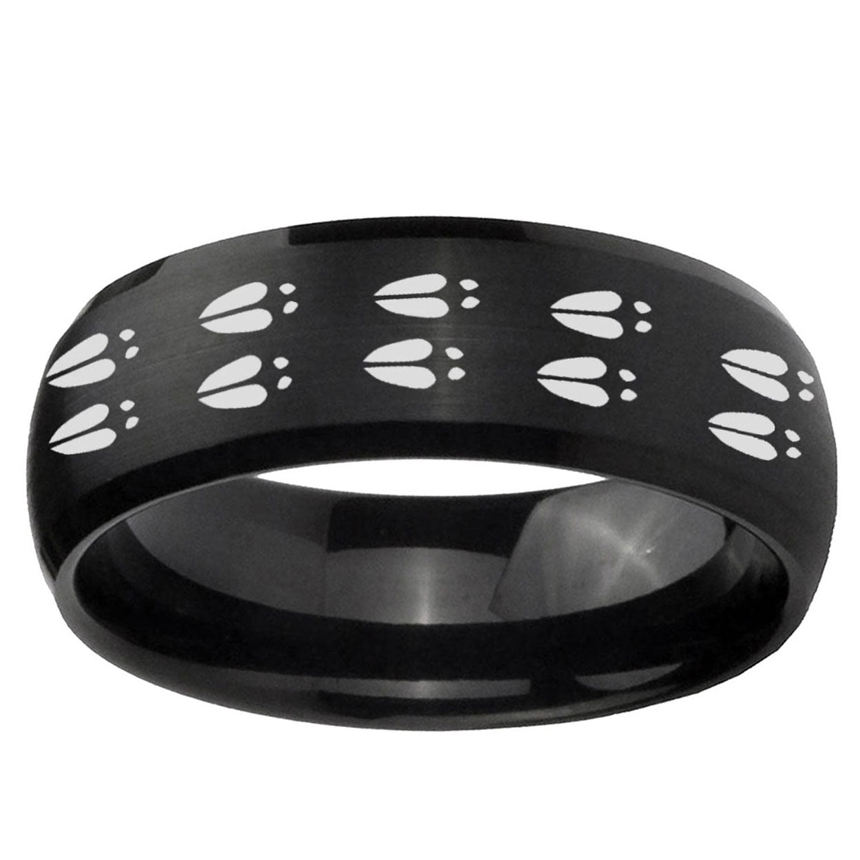 5, 8mm Deer Tracks Dome Brush Black Tungsten Carbide Men's Wedding Ring