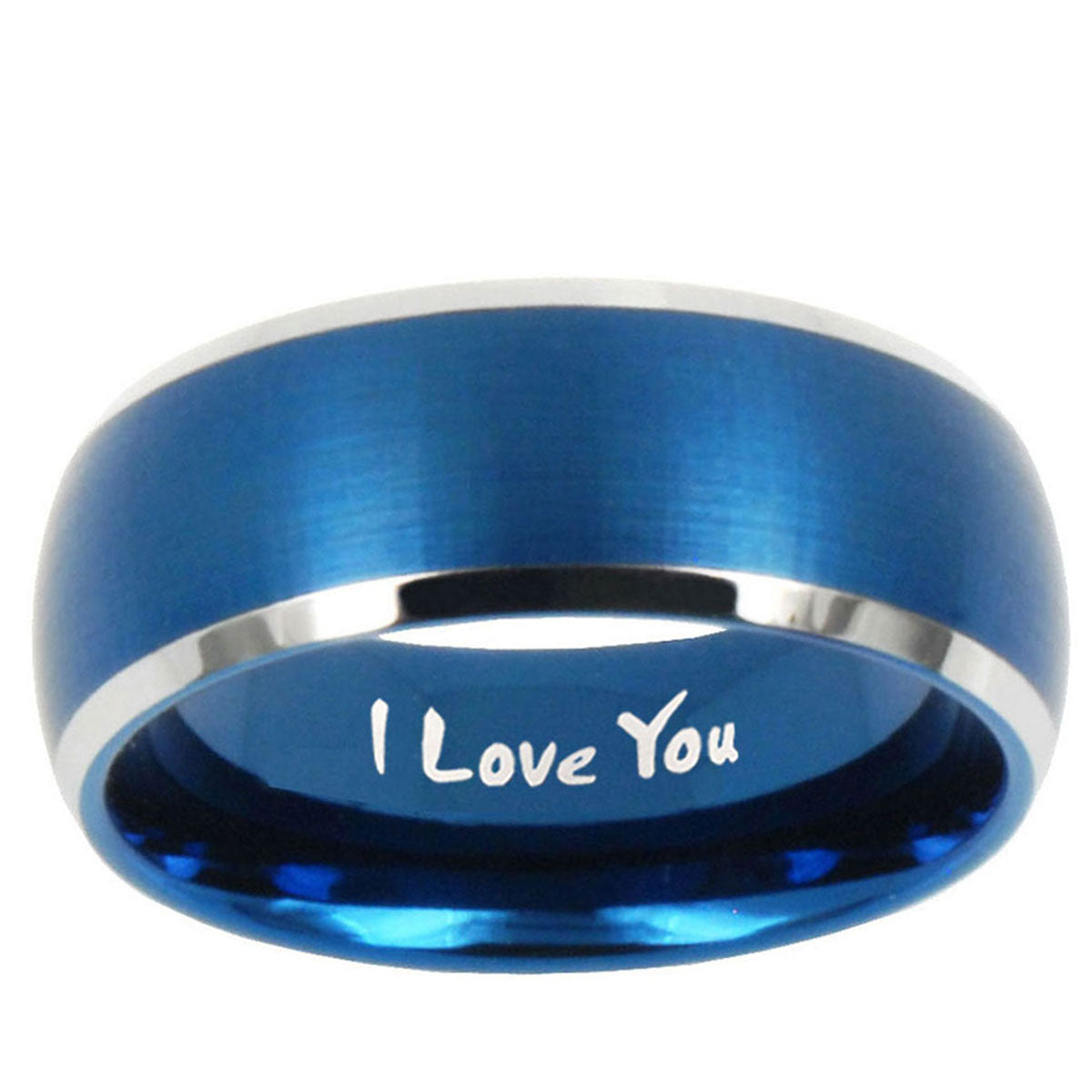 5, 8mm I Love You Dome Brushed Blue 2 Tone Tungsten Carbide Rings for Men