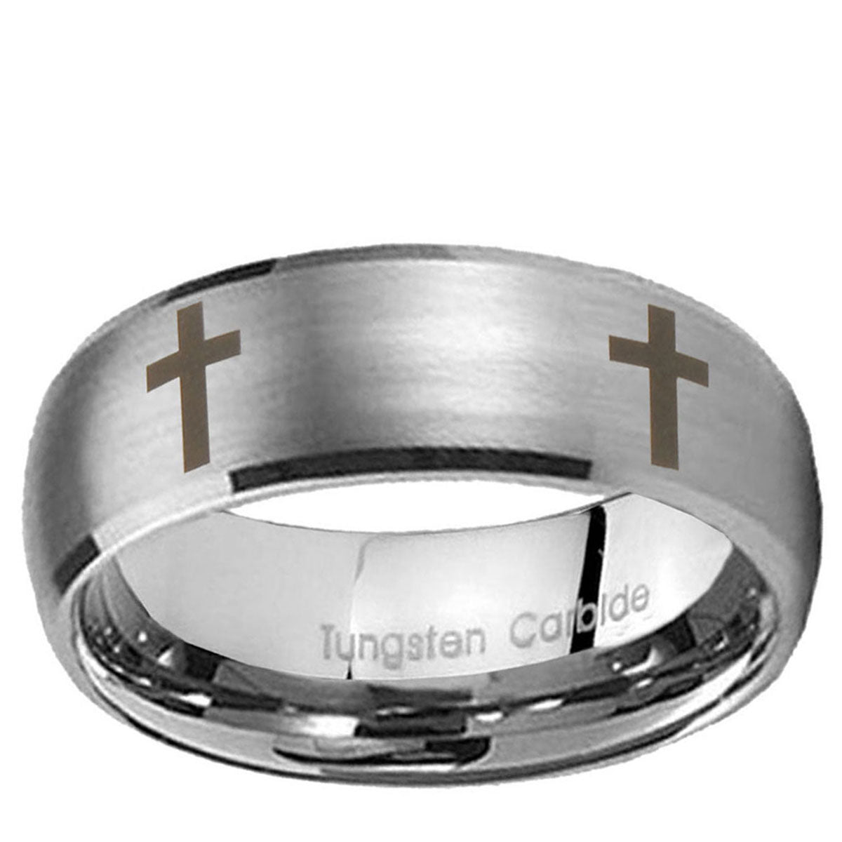 5, 8mm Crosses Dome Brushed Tungsten Carbide Men's Engagement Band