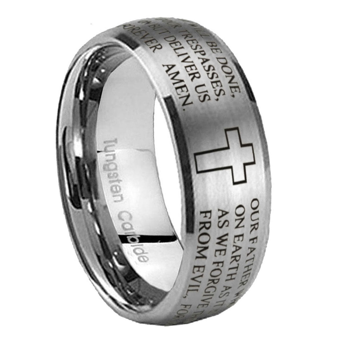 5, 8mm Bible Lord's Prayer Cross Dome Brushed Tungsten Carbide Men's Promise Rings