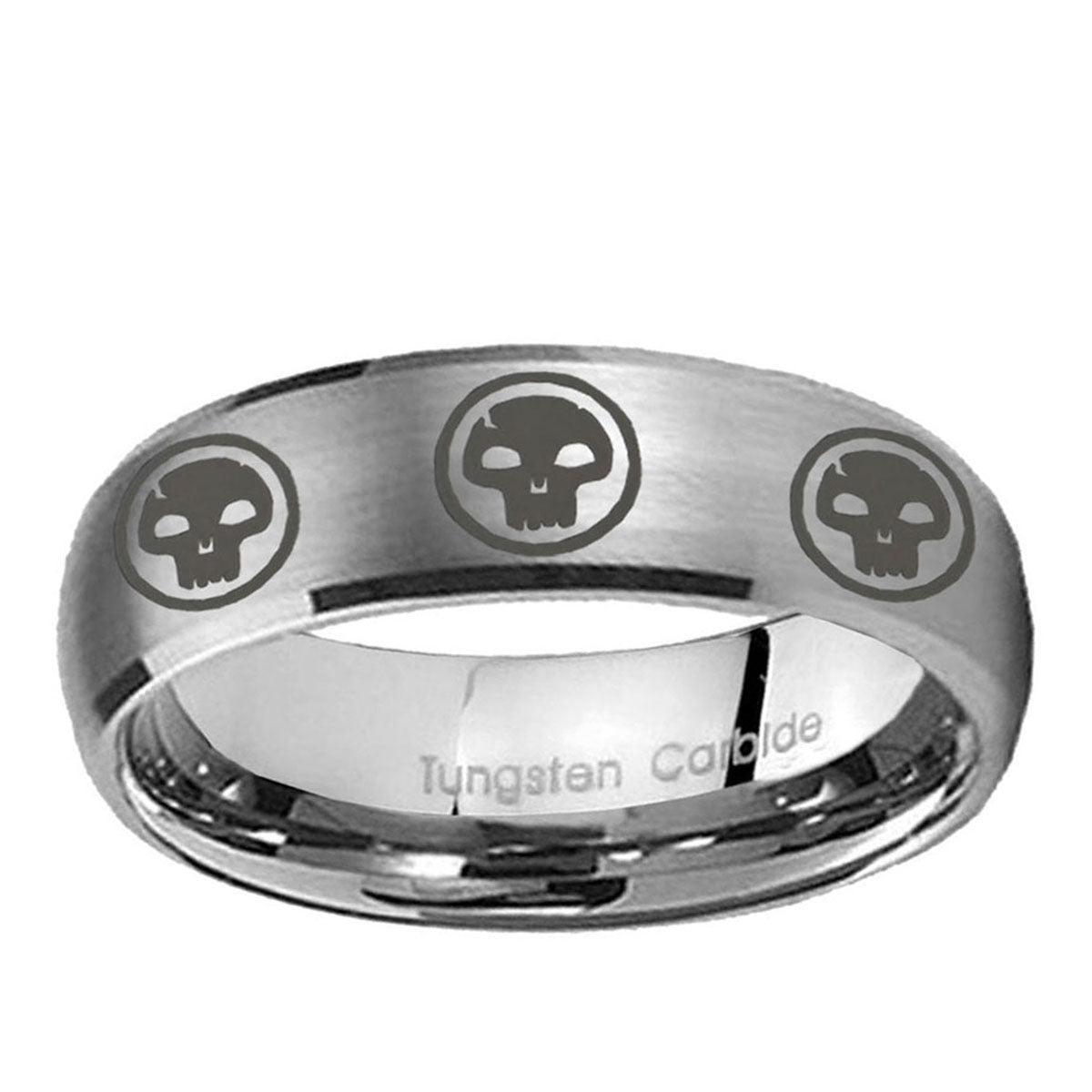 5, 8mm Multiple Skull Dome Brushed Tungsten Carbide Promise Ring