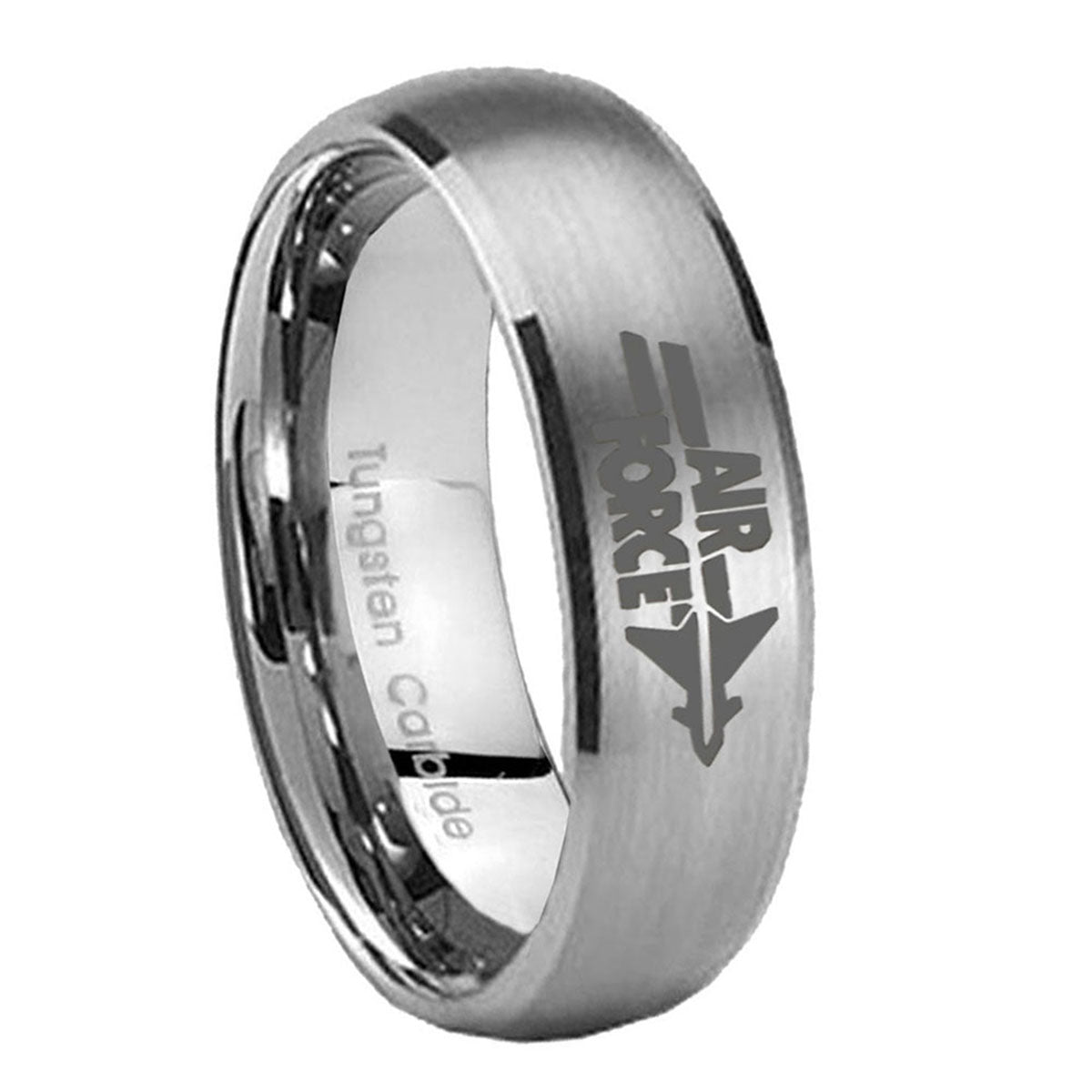 5, 8mm Classic Satin Silver Dome Air Force Tungsten Laser Engraved Ring