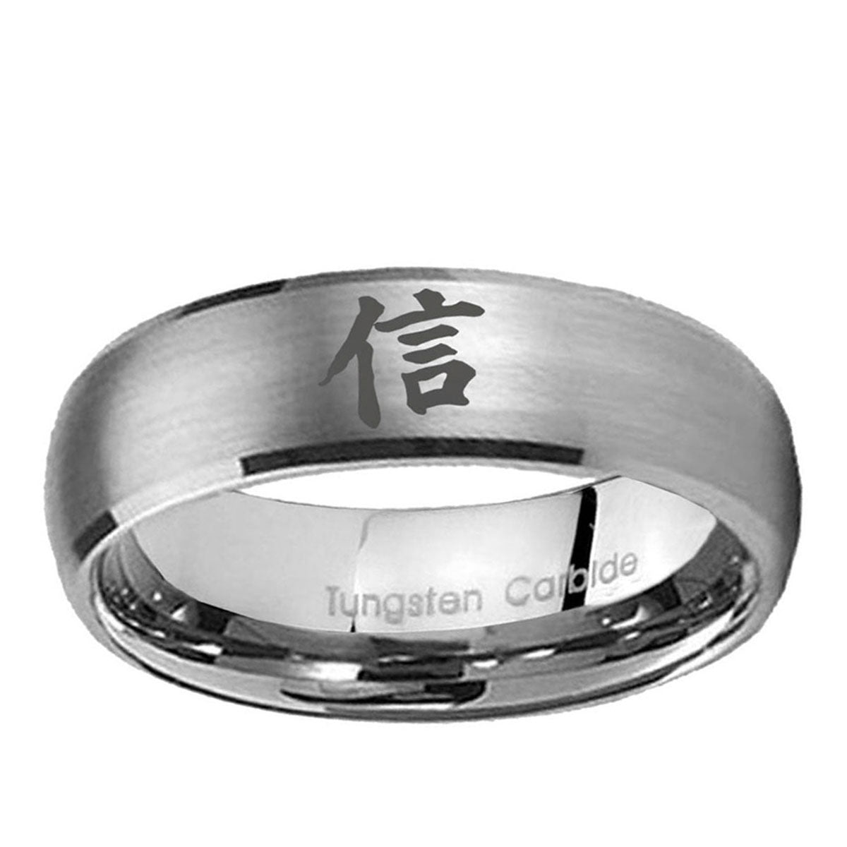 5, 8mm Kanji Faith Dome Brushed Tungsten Carbide Mens Wedding Ring