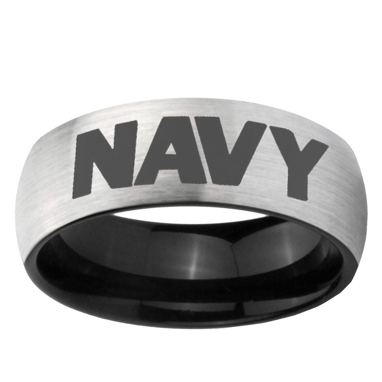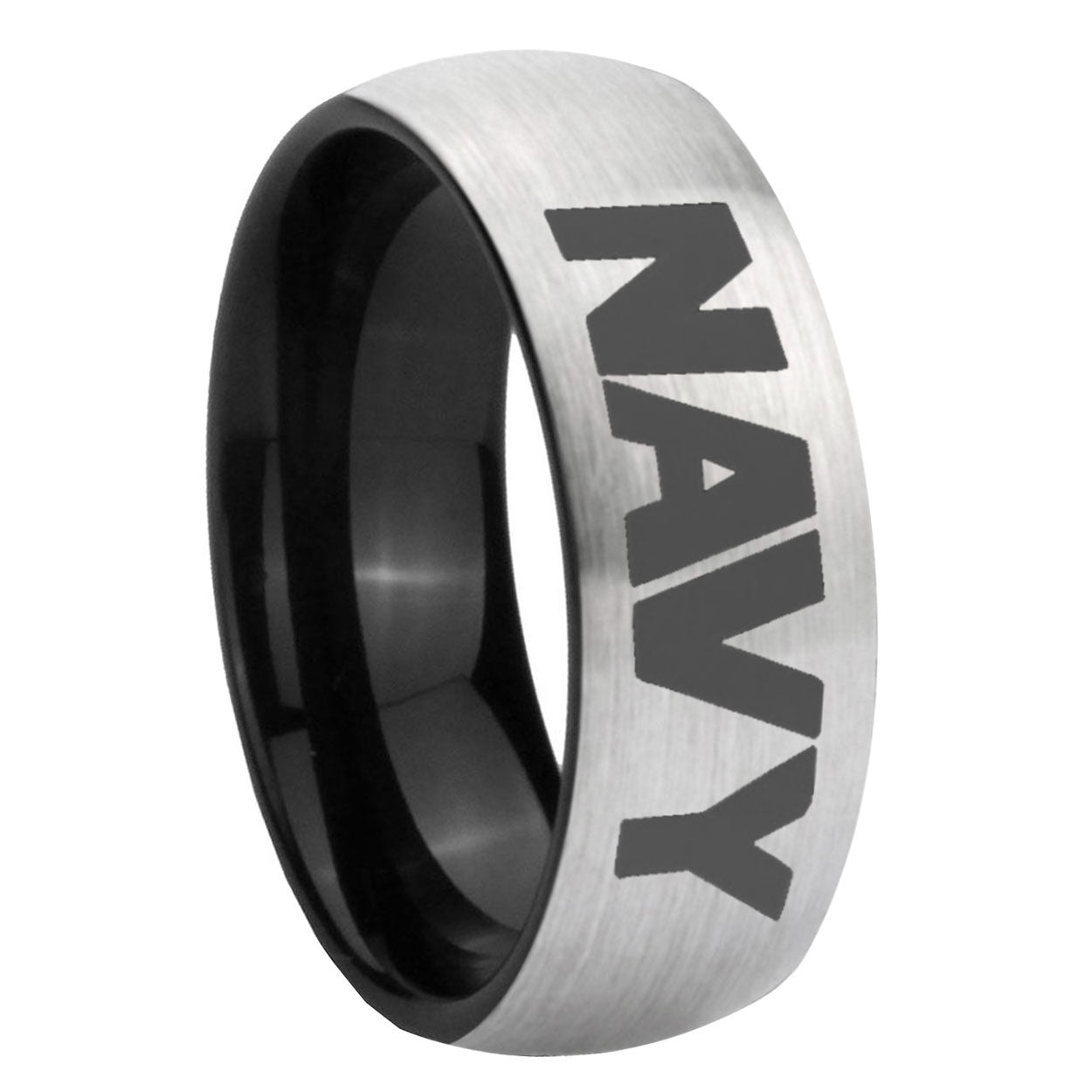 Intruding 6, 8mm Navy Dome Gray And Black Tungsten Carbide Mens Anniversary Ring . Offer in both 6mm and 8mm band width Gray And Black plated finished from size 5 to 14