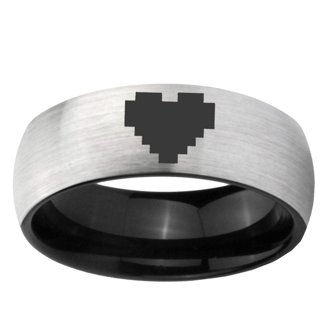 6, 8mm Classic Dome Zelda Heart Shiny Gray And Black Tungsten Laser Engraved Ring