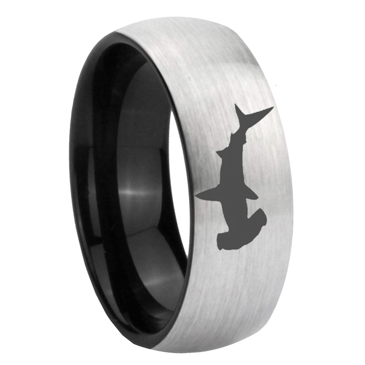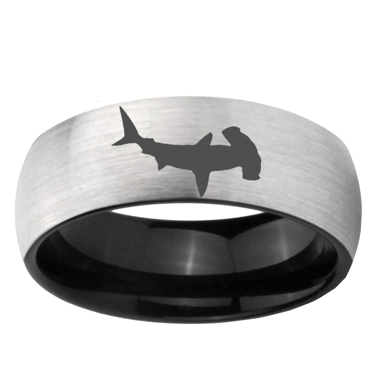 Intruding 6, 8mm Hammerhead Shark Dome Tungsten Carbide Gray And Black Wedding Band Mens . Offer in both 6mm and 8mm band width Gray And Black plated finished from size 5 to 14