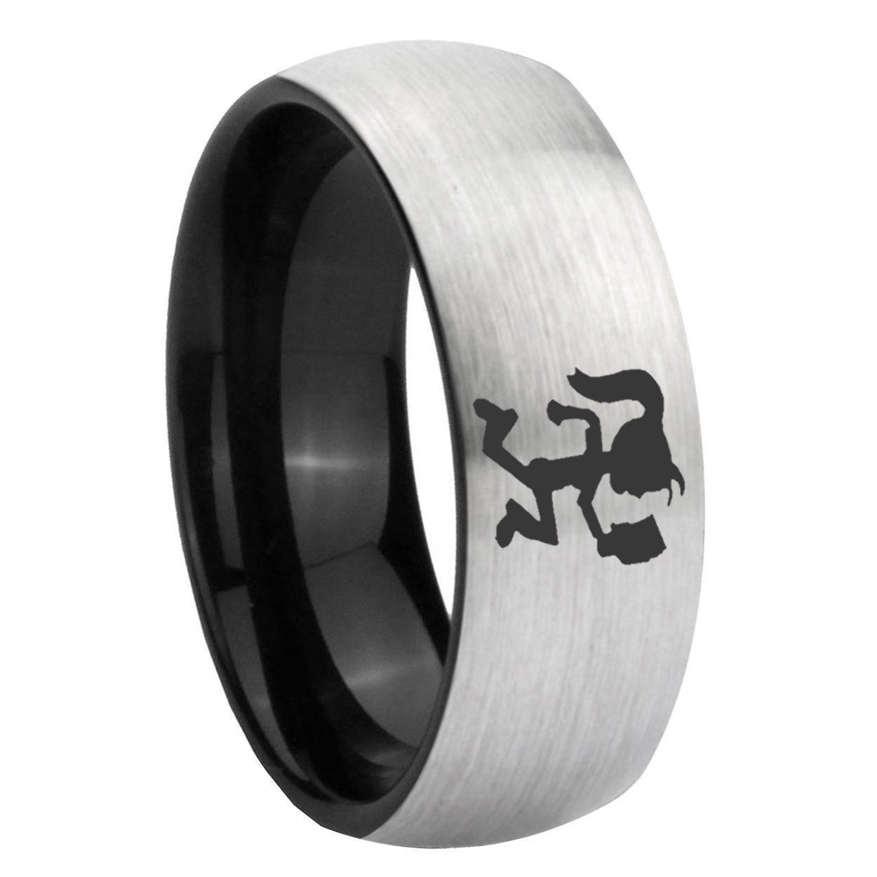 Intruding 6, 8mm Hatchet Woman Dome Tungsten Carbide Gray And Black Wedding Band Mens . Offer in both 6mm and 8mm band width Gray And Black plated finished from size 5 to 14