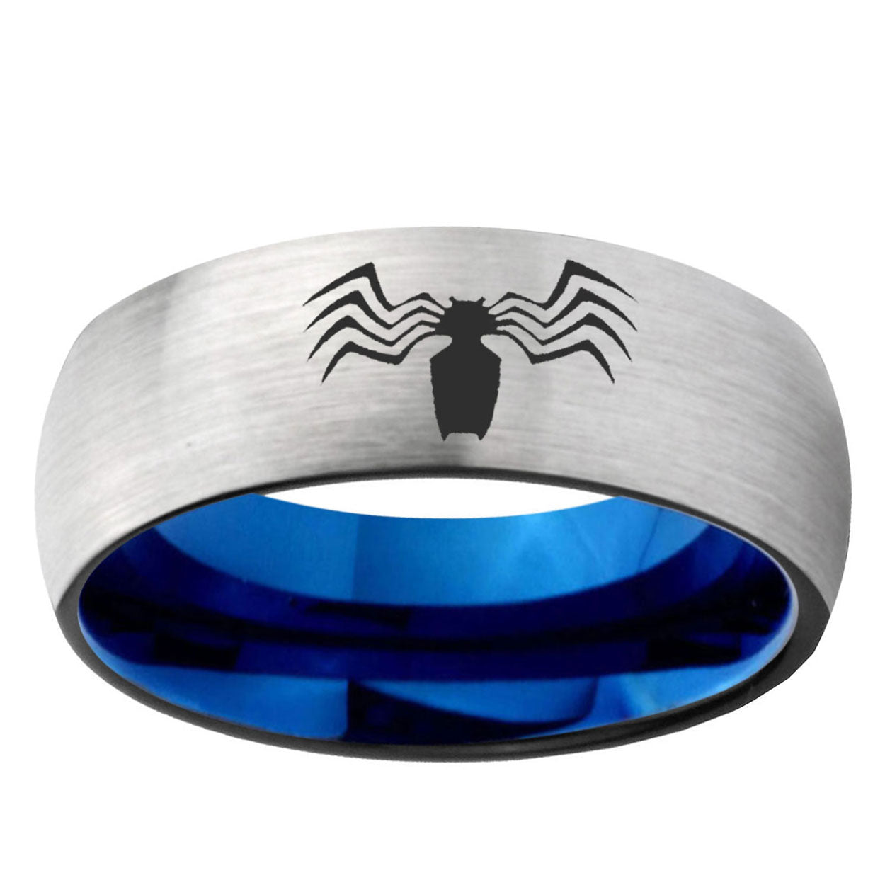 Intruding 6, 8mm Spider Dome Gray And Blue Tungsten Carbide Mens Engagement Band . Offer in both 6mm and 8mm band width gray and blue plated finished from size 5 to 14