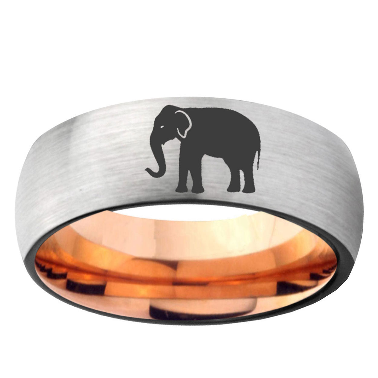 Intruding 6, 8mm Elephant Dome Gray And Rose Gold Tungsten Carbide Mens Wedding Band . Offer in both 6mm and 8mm band width gray and rose gold plated finished from size 5 to 14