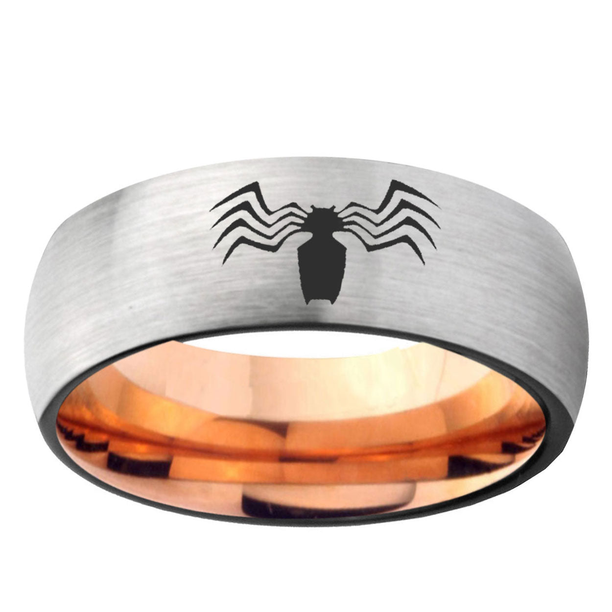 Intruding 6, 8mm Spider Dome Gray And Rose Gold Tungsten Carbide Mens Engagement Band . Offer in both 6mm and 8mm band width gray and rose gold plated finished from size 5 to 14
