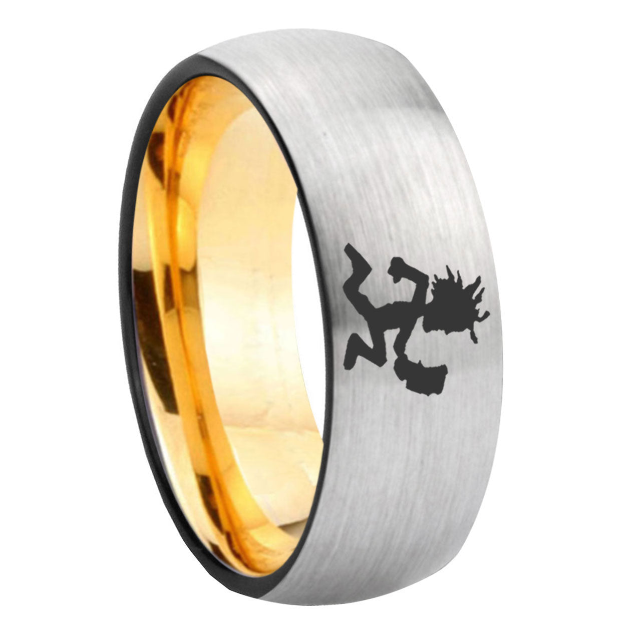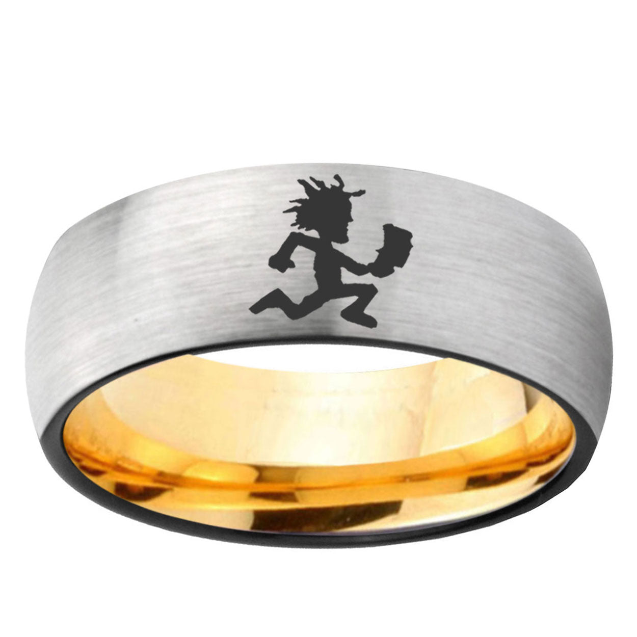 8mm Hatchet Man Dome Silver Gold Tungsten Carbide Anniversary Ring