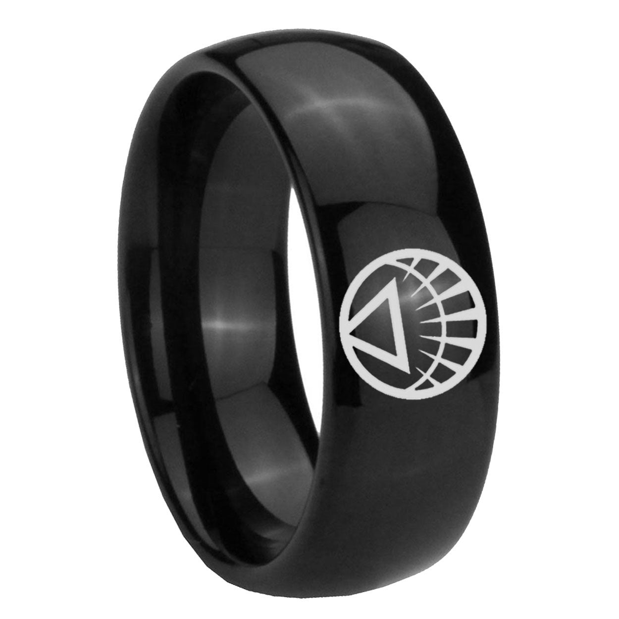 Intruding 5, 8mm White Lantern Dome Polish Black Tungsten Ring For Men . Offer in both 5mm and 8mm band width polished black plated finished from size 4 to 14