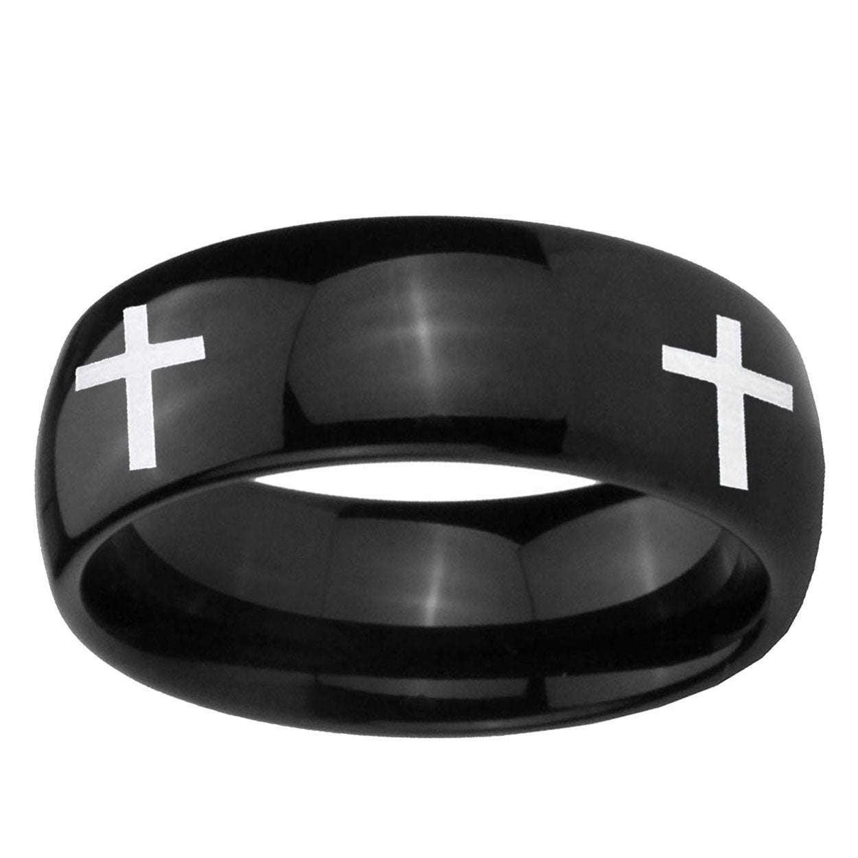Intruding 5, 8mm Crosses Dome Black Tungsten Carbide Men's Wedding Ring . Offer in both 5mm and 8mm band width polished black plated finished from size 4 to 14