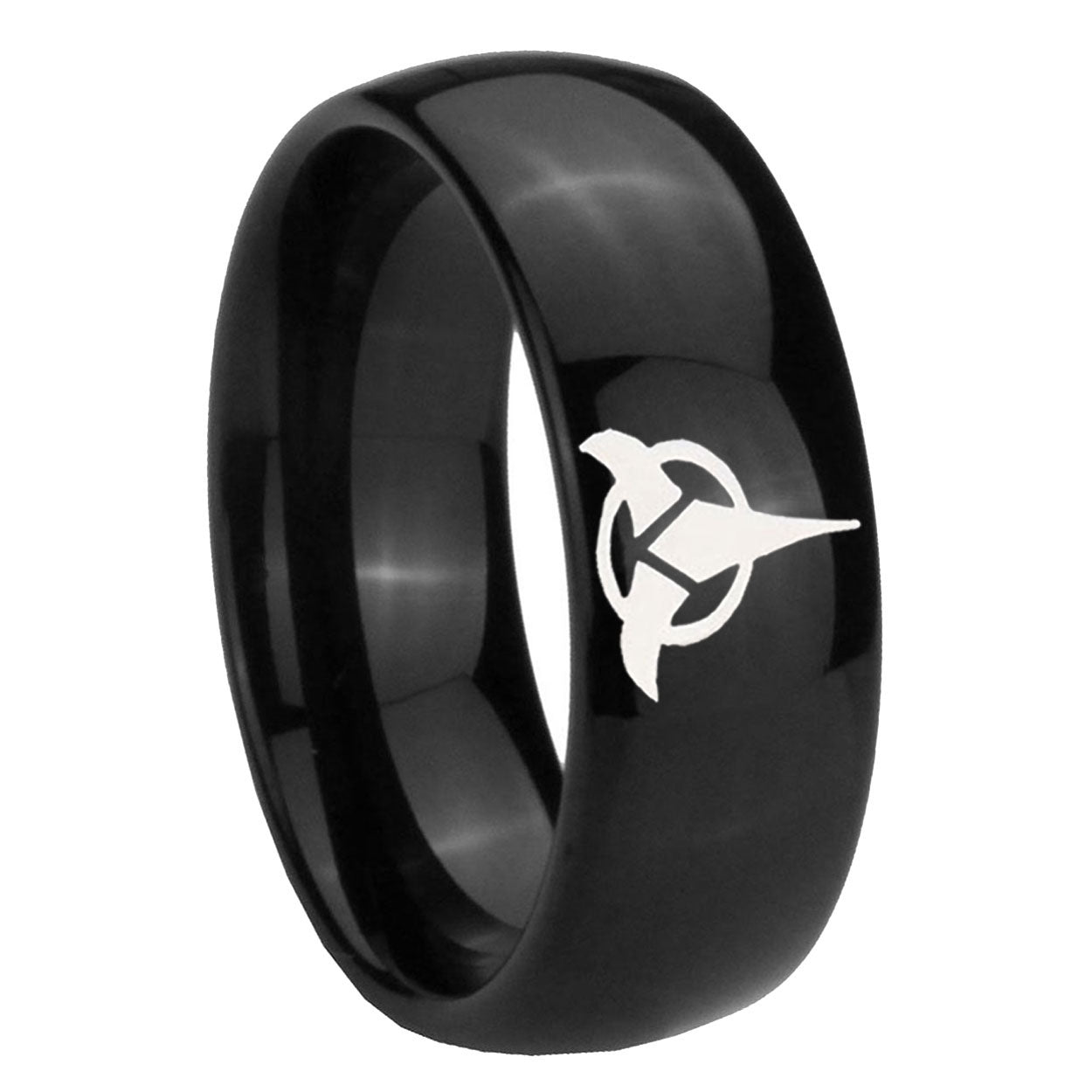 5, 8mm Klingon Dome Black Tungsten Carbide Custom Ring for Men