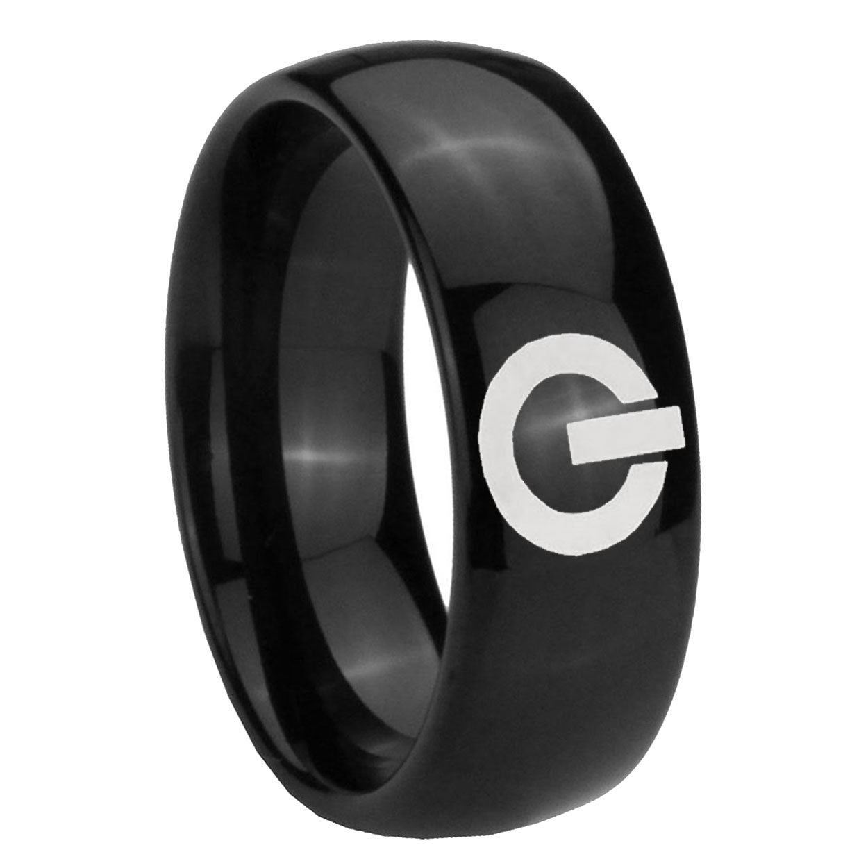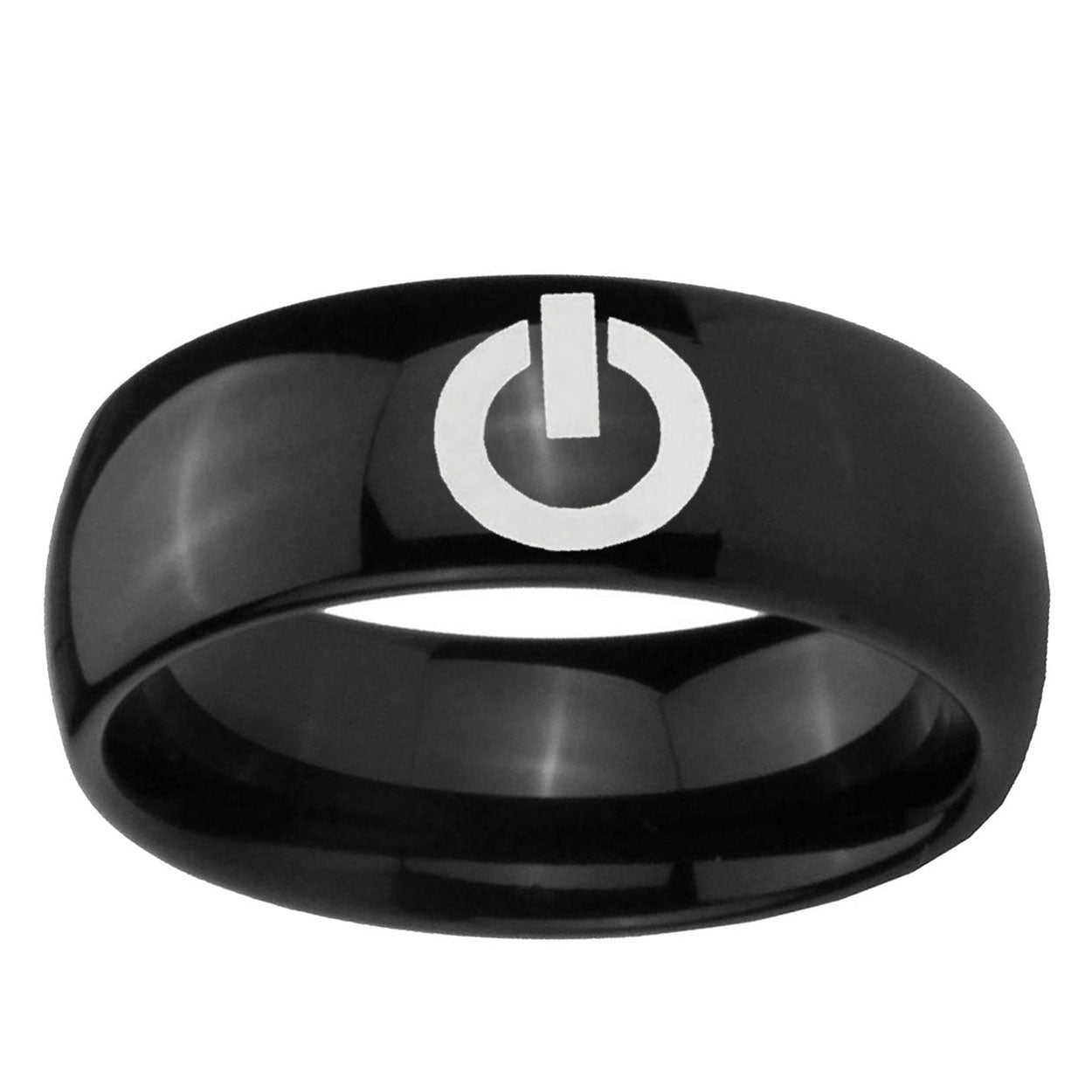 Intruding 5, 8mm Power Dome Black Tungsten Carbide Wedding Engagement Ring . Offer in both 5mm and 8mm band width polished black plated finished from size 4 to 14