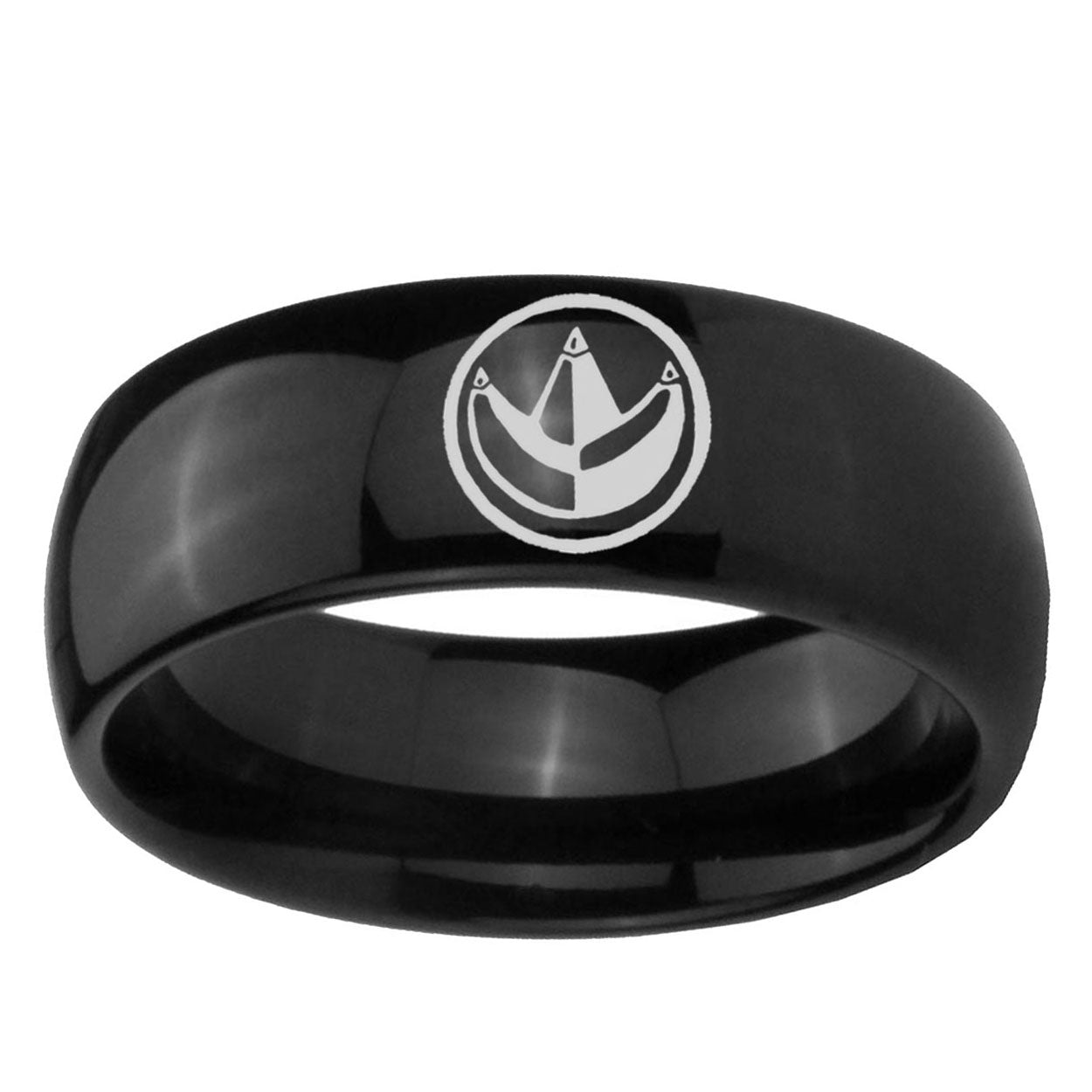 Intruding 5, 8mm Green Ranger Power Dome Black Tungsten Carbide Mens Wedding Band . Offer in both 5mm and 8mm band width polished black plated finished from size 4 to 14