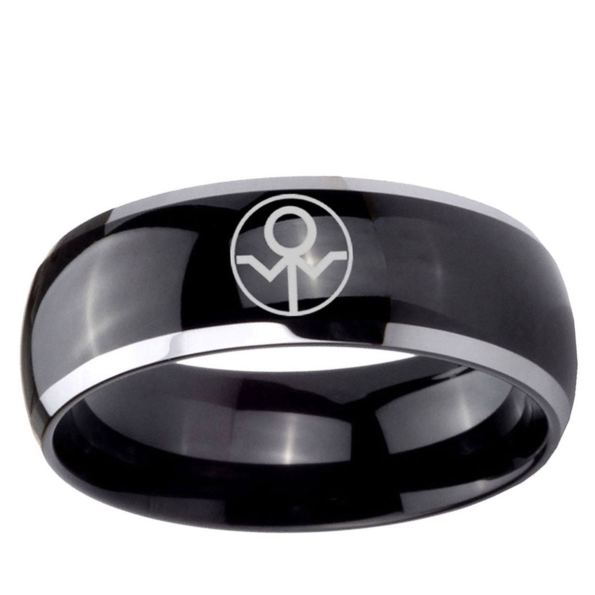 Intruding 5, 8mm Gray Lantern Dome Two Tone Black Metal Wedding Bands . Offer in both 5mm and 8mm band width polished black plated two tone finished from size 4 to 14