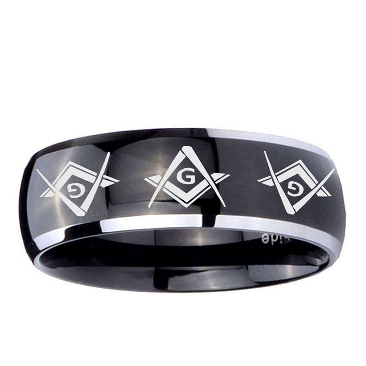 Intruding 5, 8mm Master Mason Masonic Dome Glossy Black 2 Tone Tungsten Mens Wedding Band . Offer in both 5mm and 8mm band width polished black plated two tone finished from size 4 to 14