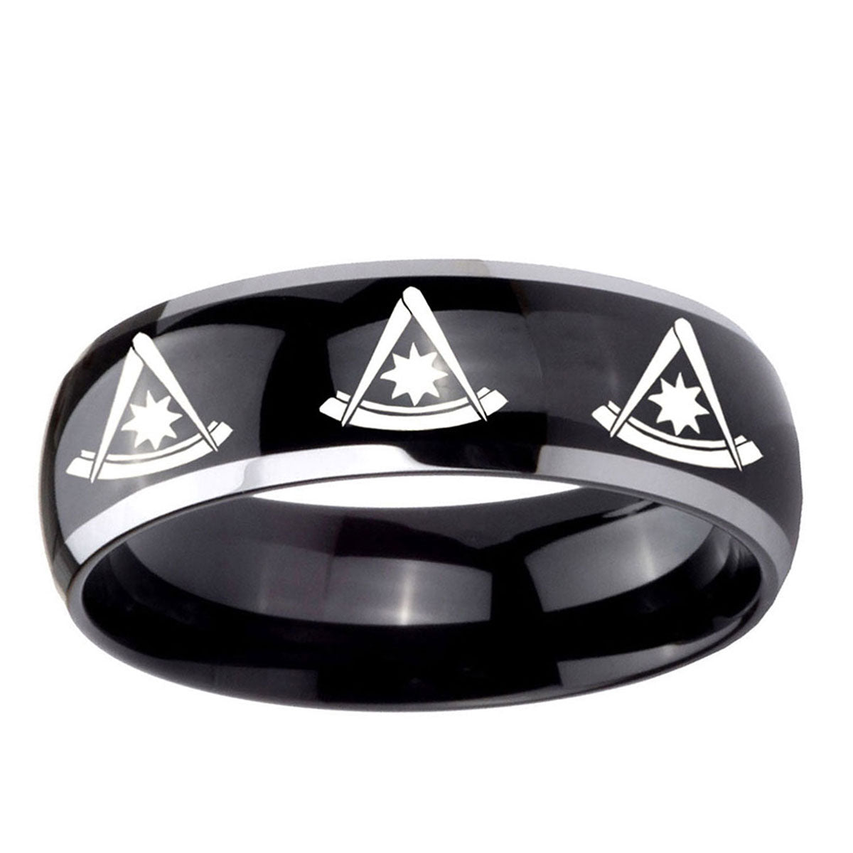 Intruding 5, 8mm Multiple Pester Master Masonic Dome Glossy Black 2 Tone Tungsten Mens Ring . Offer in both 5mm and 8mm band width polished black plated two tone finished from size 4 to 14
