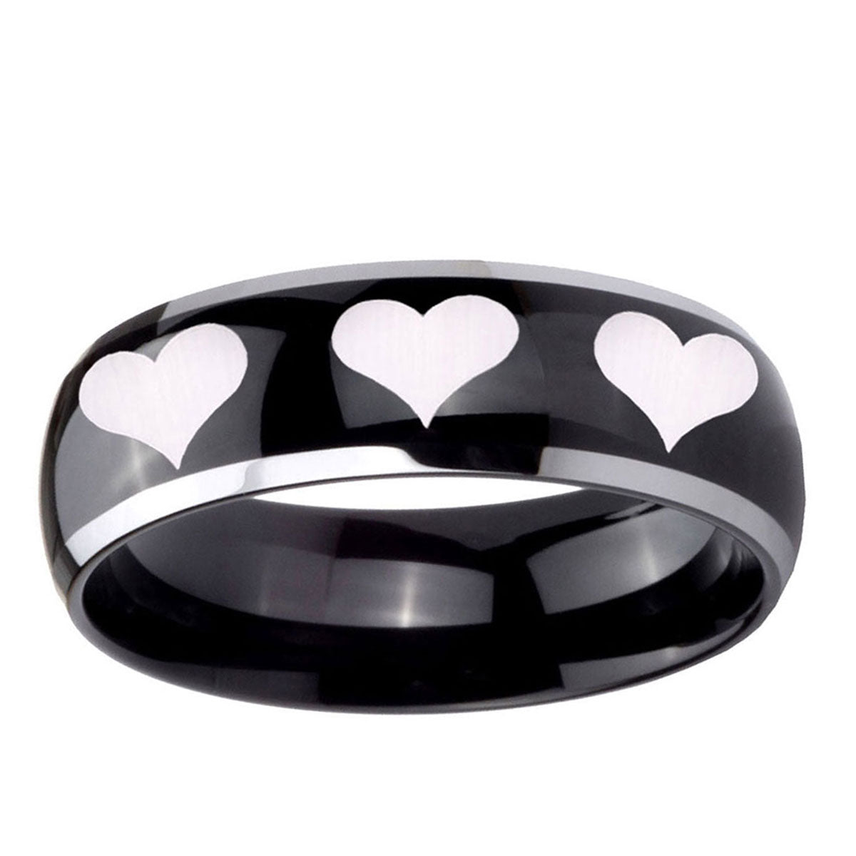 5, 8mm Multiple Heart Dome Glossy Black 2 Tone Tungsten Carbide Mens Wedding Band