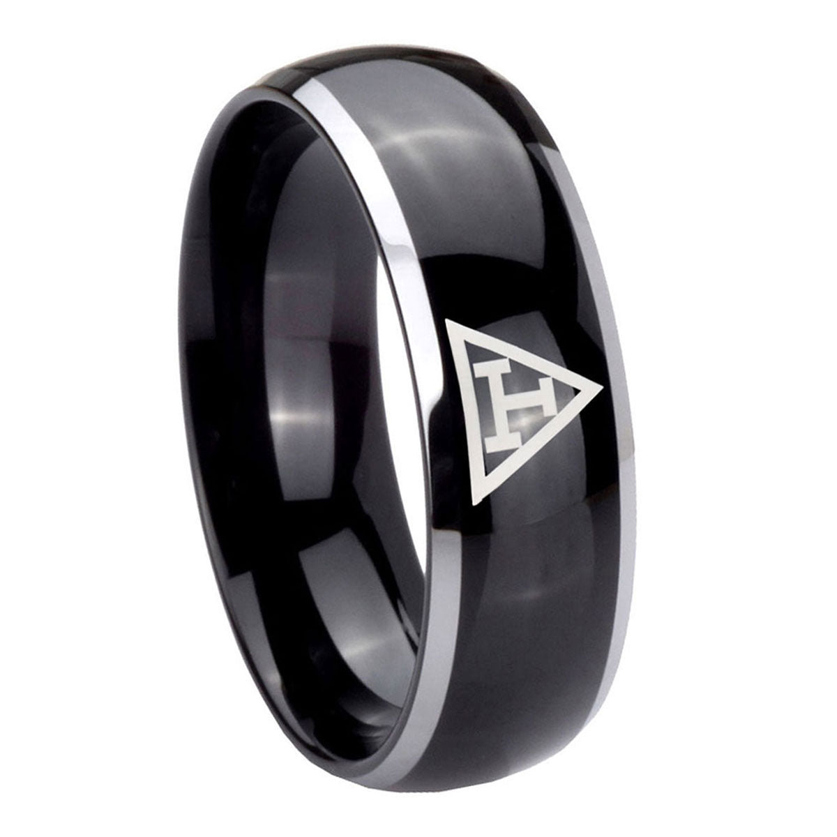 Intruding 5, 8mm Masonic Triple Dome Glossy Black 2 Tone Tungsten Carbide Wedding Band Mens . Offer in both 5mm and 8mm band width polished black plated two tone finished from size 4 to 14