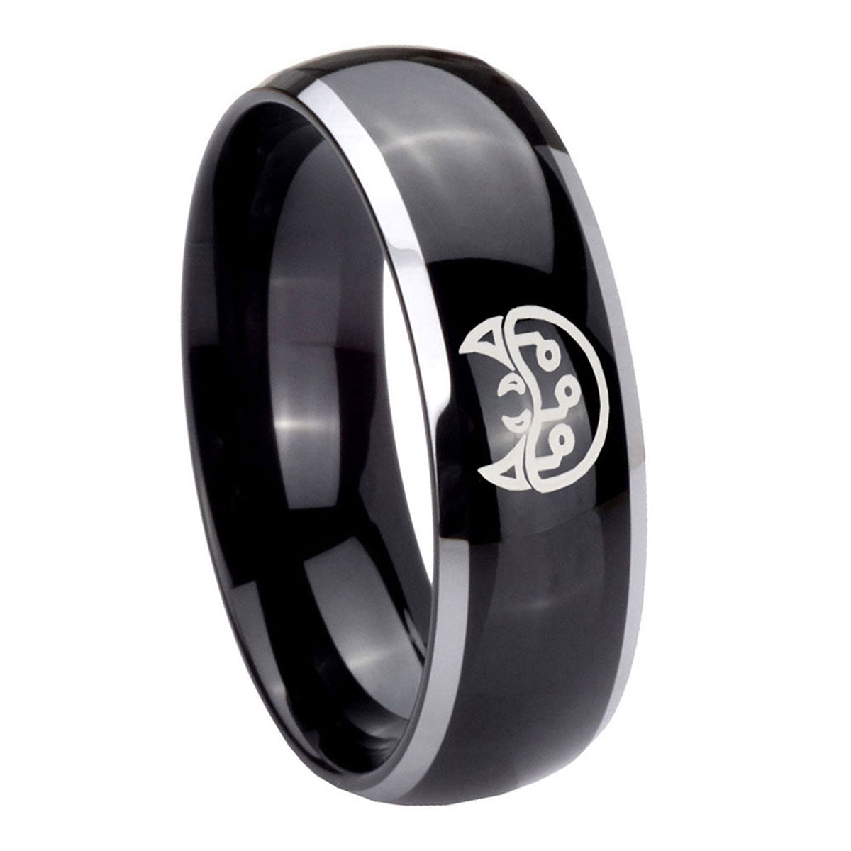 Intruding 5, 8mm Metroid Dome Glossy Black 2 Tone Tungsten Carbide Mens Ring . Offer in both 5mm and 8mm band width polished black plated two tone finished from size 4 to 14
