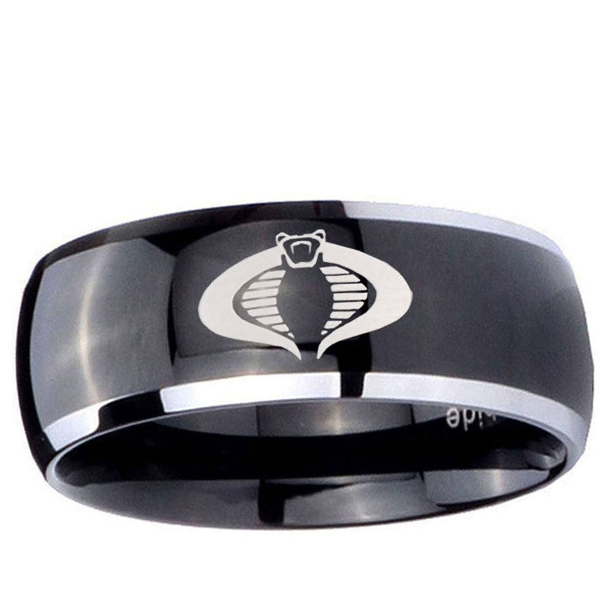Intruding 5, 8mm Cobra Dome Glossy Black 2 Tone Tungsten Carbide Bands Ring . Offer in both 5mm and 8mm band width polished black plated two tone finished from size 4 to 14