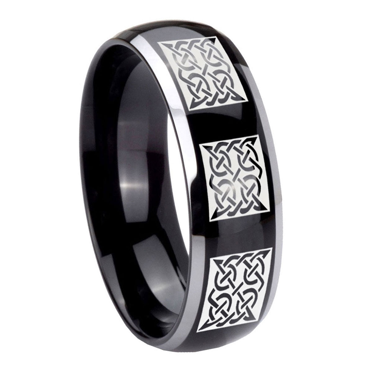 5, 8mm Multiple Celtic Dome Glossy Black 2 Tone Tungsten Custom Ring for Men