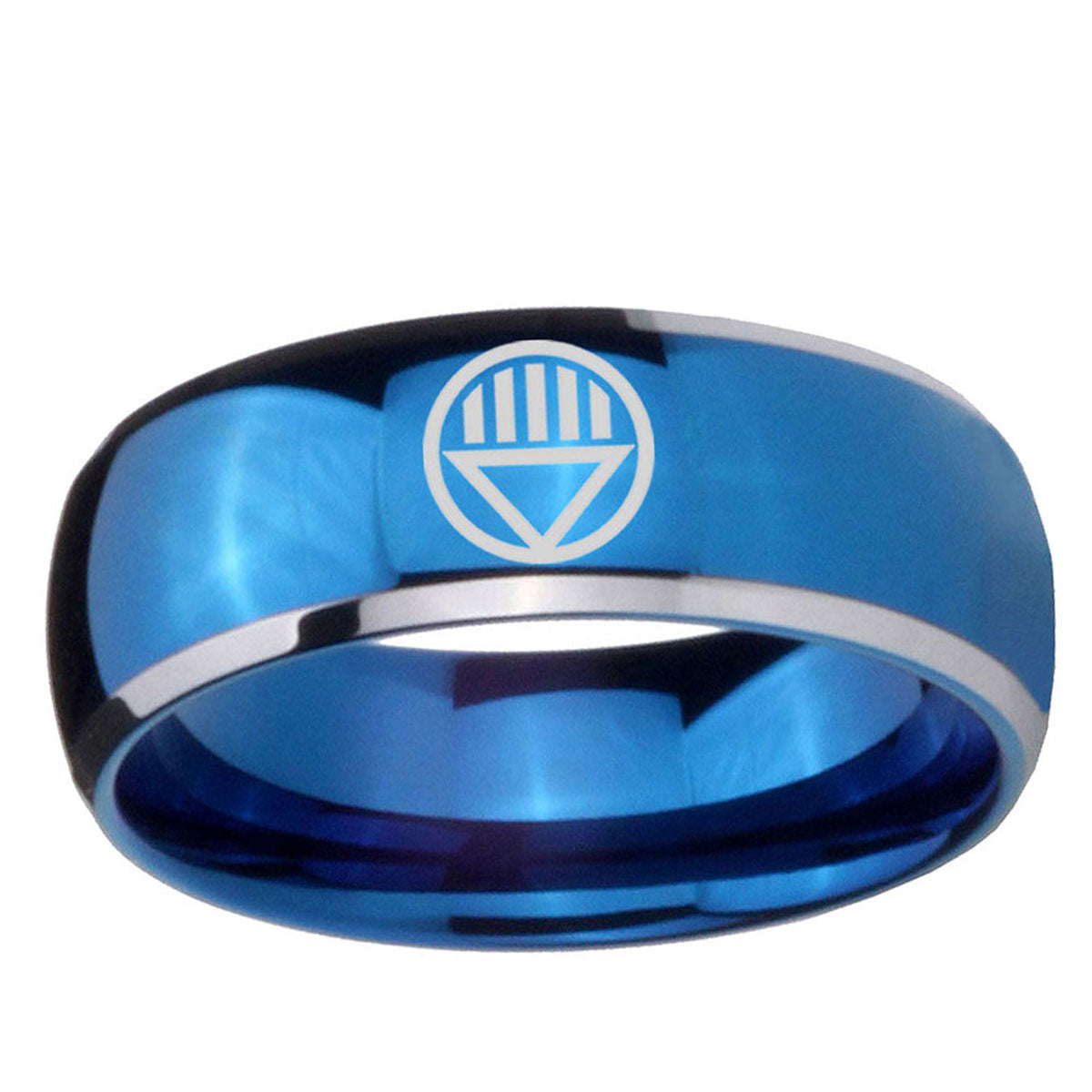 Intruding 5, 8mm Black Lantern Dome Two Tone Blue Casual Rings For Women . Offer in both 5mm and 8mm band width polished blue plated two tone finished from size 4 to 14