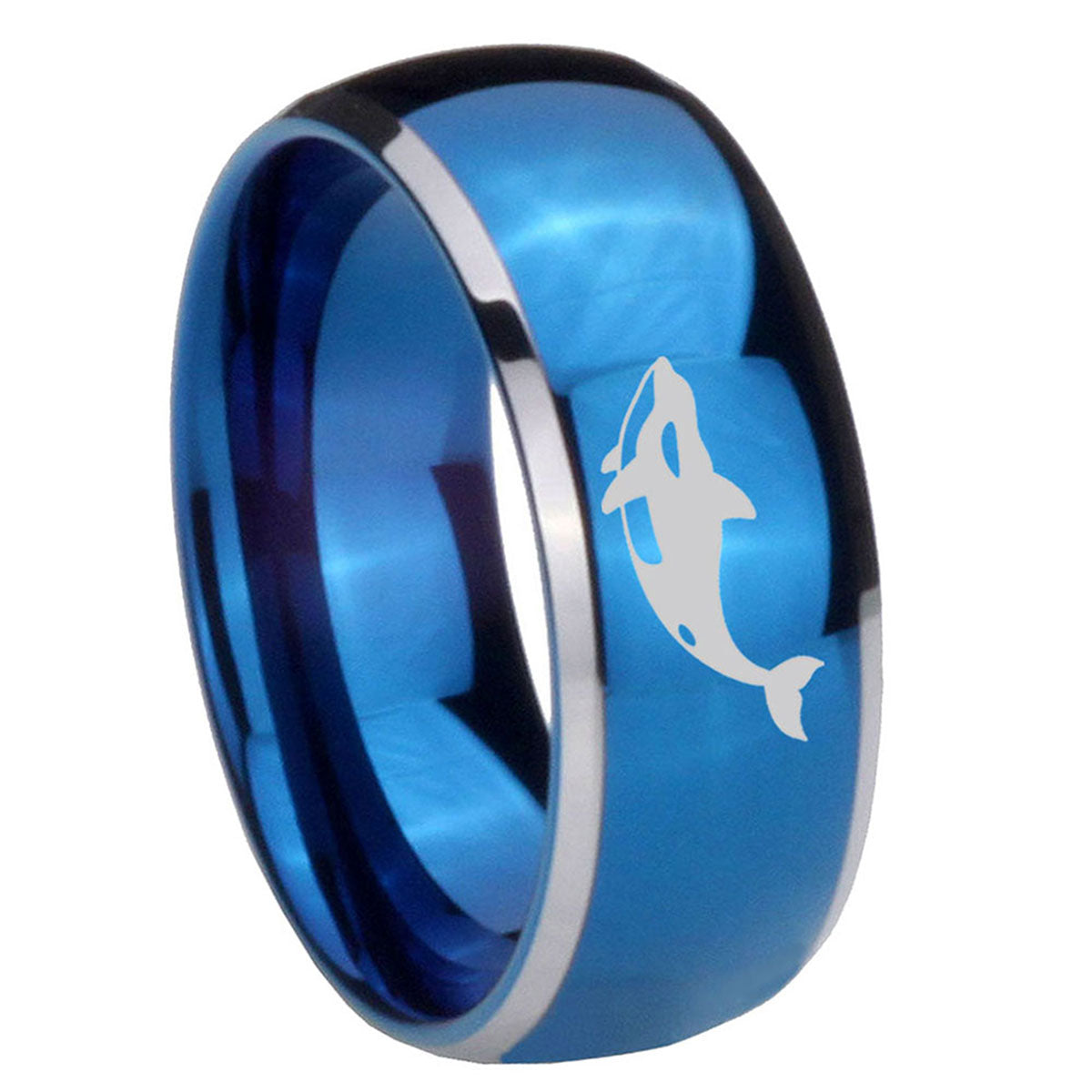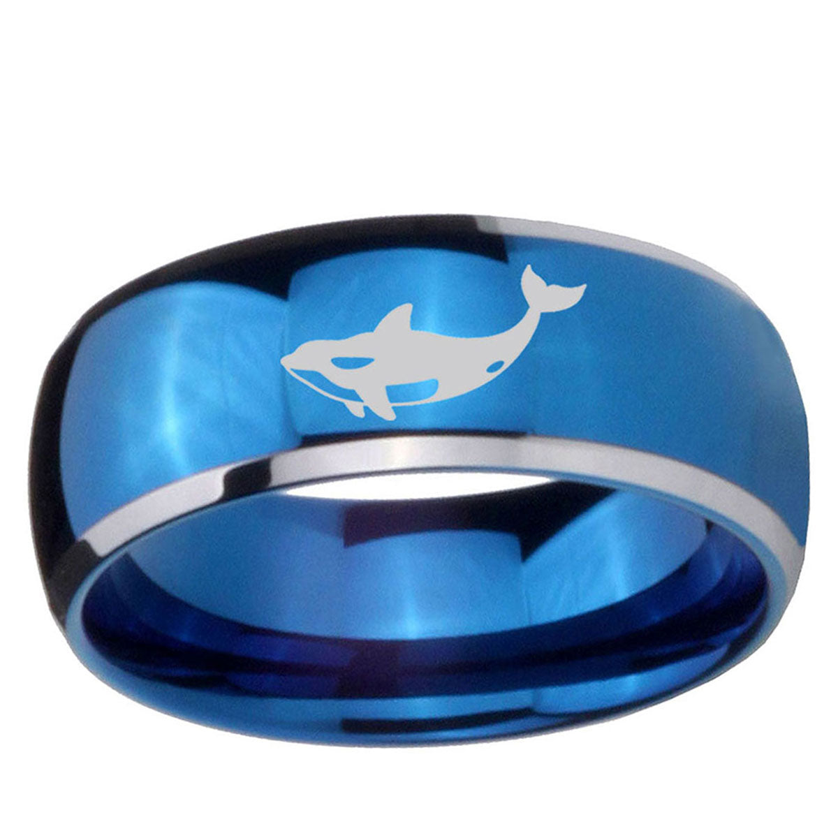 Intruding 5, 8mm Keller Whale Dome Blue 2 Tone Tungsten Carbide Promise Ring . Offer in both 5mm and 8mm band width polished blue plated 2 tone finished from size 4 to 14