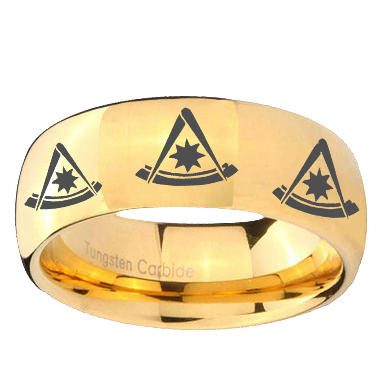 Intruding 5, 8mm Multiple Pester Master Masonic Dome Gold Tungsten Mens Engagement Band . Offer in both 5mm and 8mm band width polished 18k gold plated finished from size 4 to 14