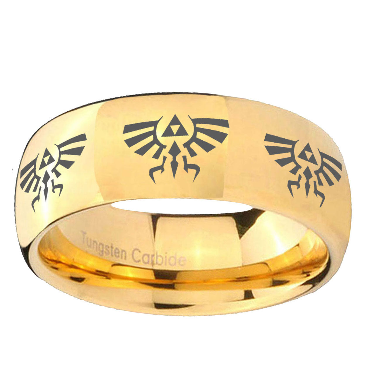 Intruding 5, 8mm Multiple Zelda Skyward Sword Dome Gold Tungsten Carbide Personalized Ring . Offer in both 5mm and 8mm band width polished 18k gold plated finished from size 4 to 14