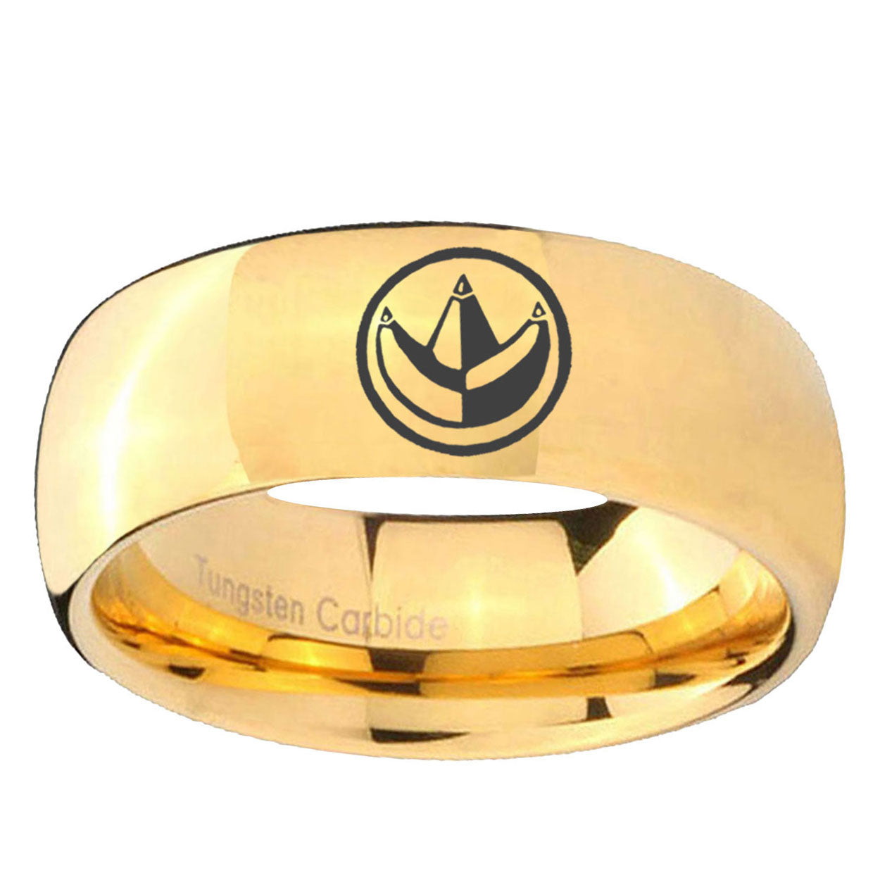 Intruding 5, 8mm Green Ranger Power Dome Gold Tungsten Carbide Anniversary Ring . Offer in both 5mm and 8mm band width polished 18k gold plated finished from size 4 to 14