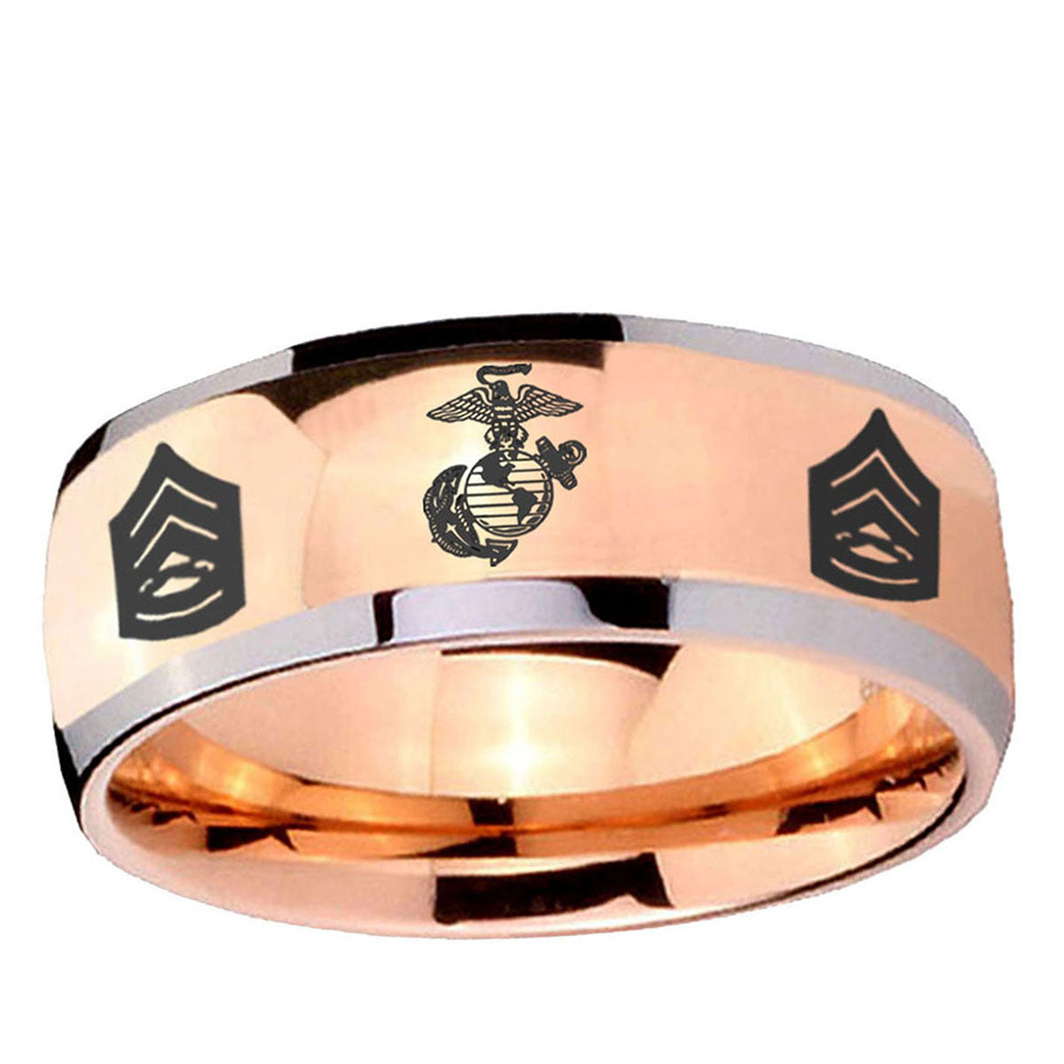 5, 8mm Marine Army Sergeant Dome Rose Gold Tungsten Carbide Custom Ring for Men