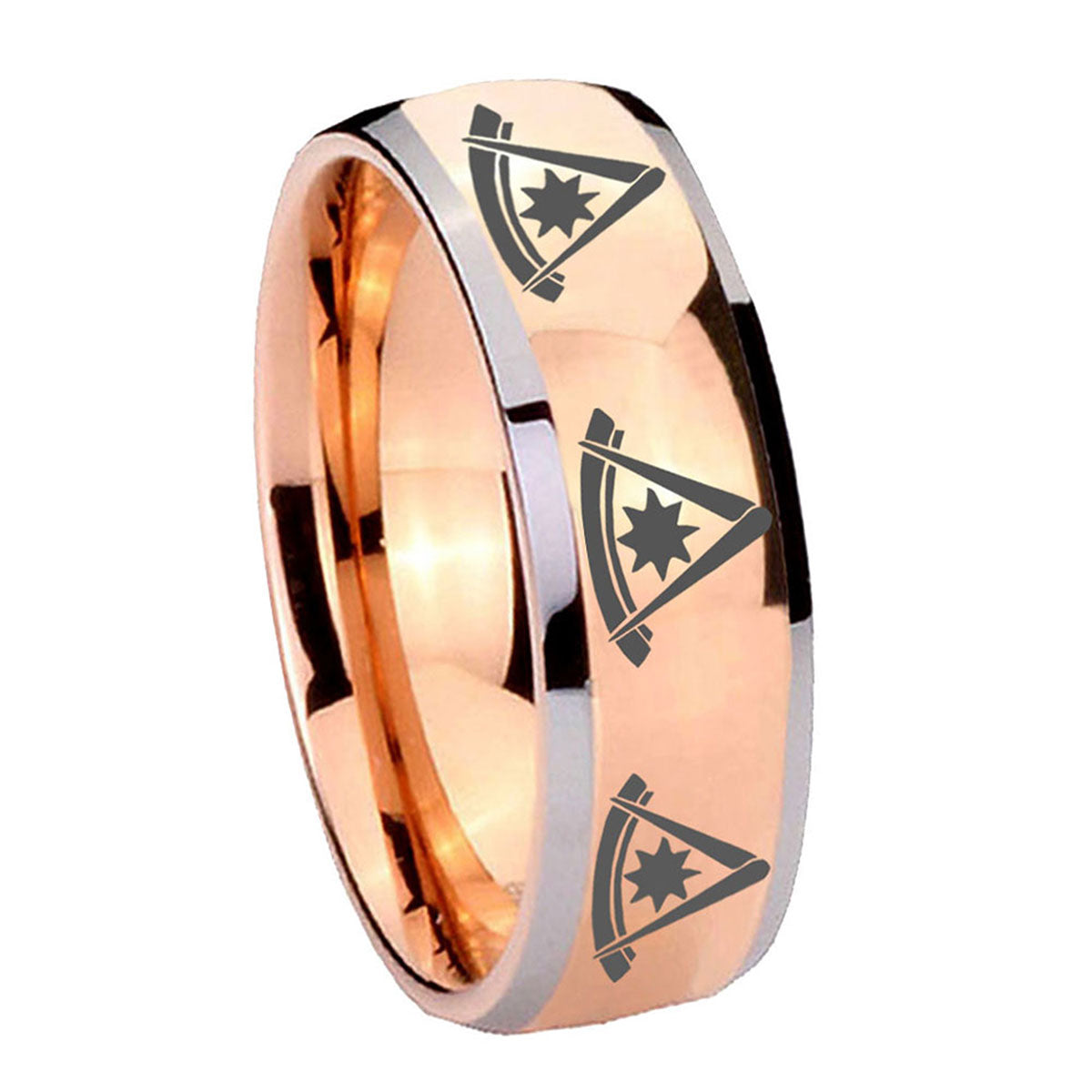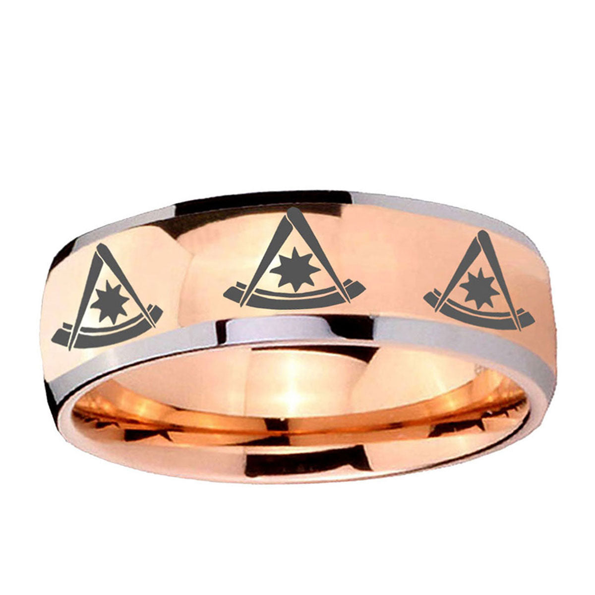 Intruding 5, 8mm Multiple Pester Master Masonic Dome Rose Gold Tungsten Mens Engagement Ring . Offer in both 5mm and 8mm band width two tone rose gold plated finished from size 4 to 14