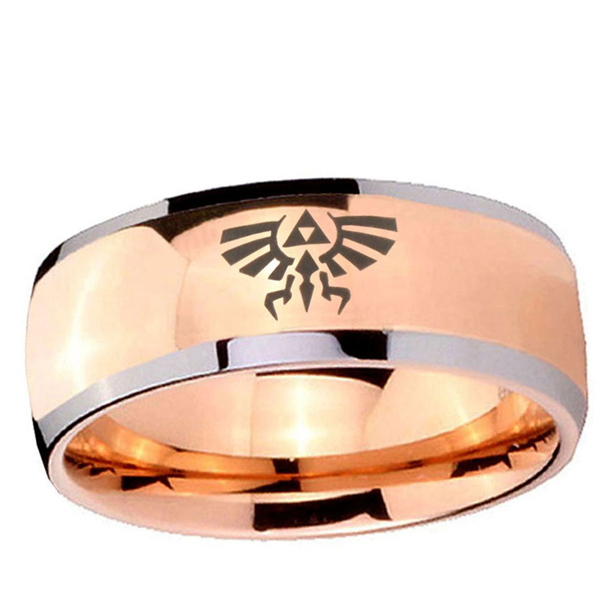 Intruding 5, 8mm Zelda Skyward Sword Dome Rose Gold Tungsten Carbide Promise Ring . Offer in both 5mm and 8mm band width two tone rose gold plated finished from size 4 to 14