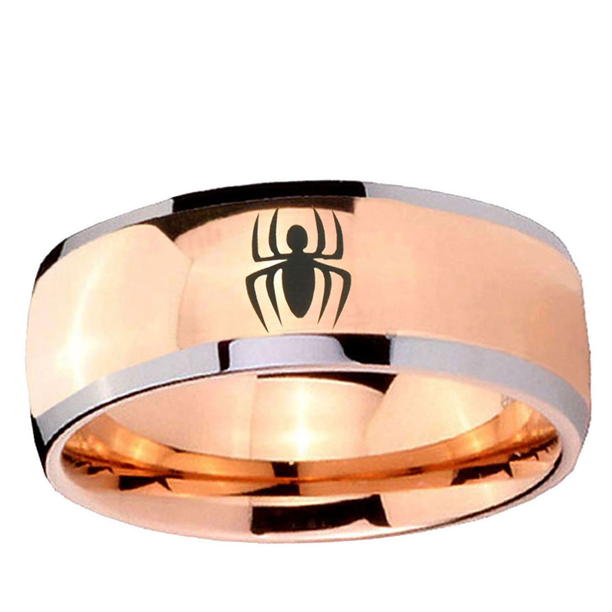 Intruding 5, 8mm Spiderman Dome Rose Gold Tungsten Carbide Mens Ring Personalized . Offer in both 5mm and 8mm band width two tone rose gold plated finished from size 4 to 14