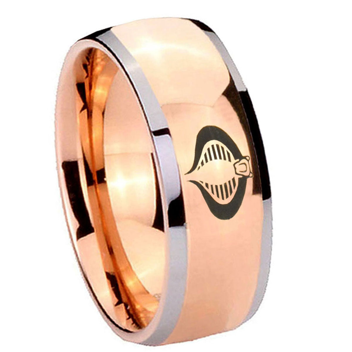Intruding 5, 8mm Cobra Dome Rose Gold Tungsten Carbide Wedding Engagement Ring . Offer in both 5mm and 8mm band width two tone rose gold plated finished from size 4 to 14