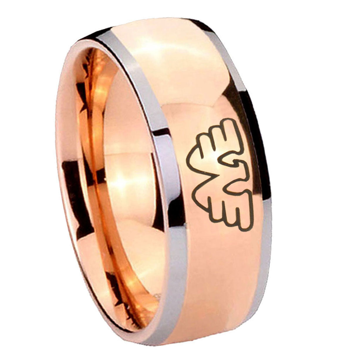 Intruding 5, 8mm Waylon Jennings Dome Rose Gold Tungsten Carbide Mens Ring . Offer in both 5mm and 8mm band width two tone rose gold plated finished from size 4 to 14