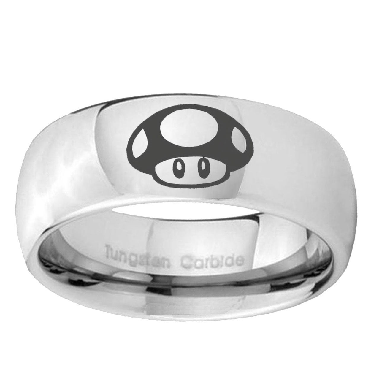 Intruding 5, 8mm Mario Mushroom Mirror Dome Tungsten Carbide Wedding Band Mens . Offer in both 5mm and 8mm band width polished silver finished from size 4 to 14