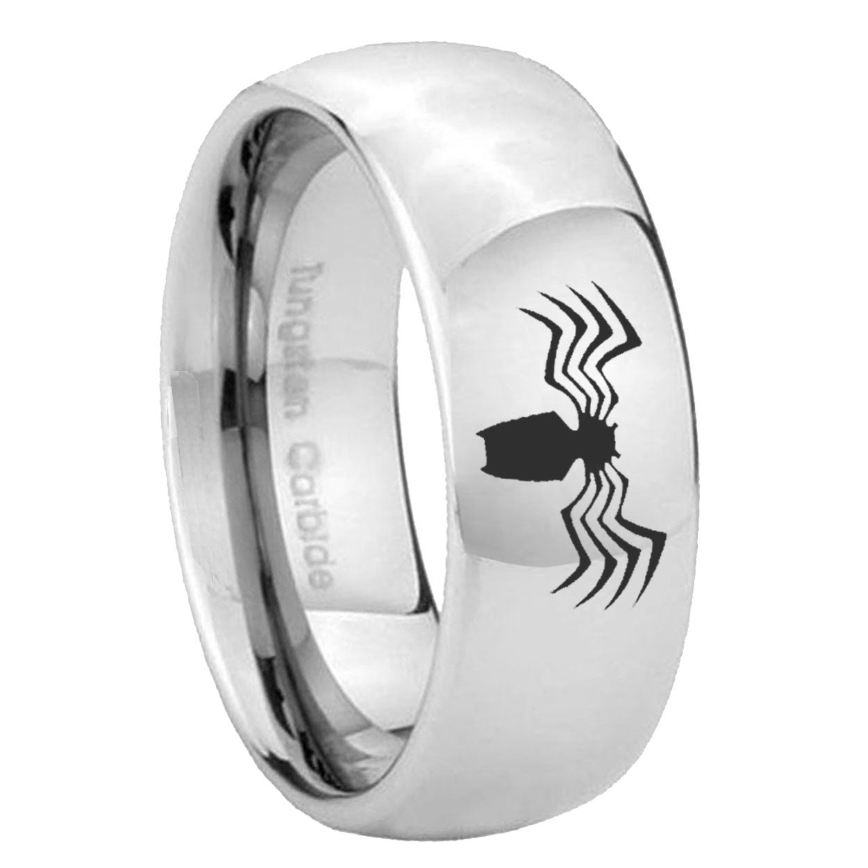 Intruding 5, 8mm Spider Mirror Dome Tungsten Carbide Mens Engagement Band . Offer in both 5mm and 8mm band width polished silver finished from size 4 to 14