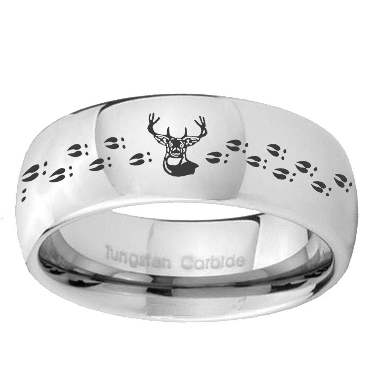 Intruding 5, 8mm Deer Antler Mirror Dome Tungsten Carbide Engagement Ring . Offer in both 5mm and 8mm band width polished silver finished from size 4 to 14