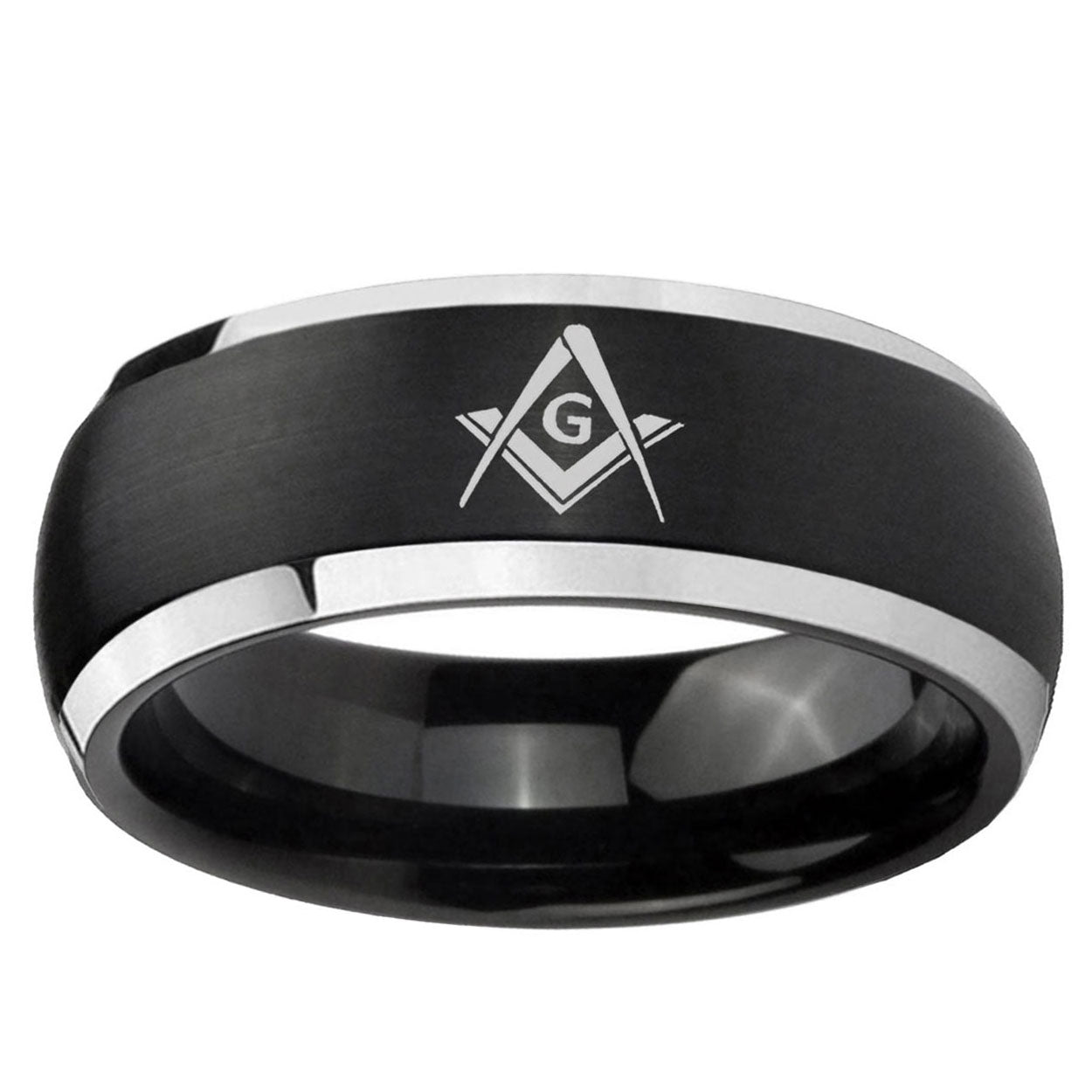 5, 8mm Freemason Masonic Dome Brushed Black 2 Tone Tungsten Personalized Ring