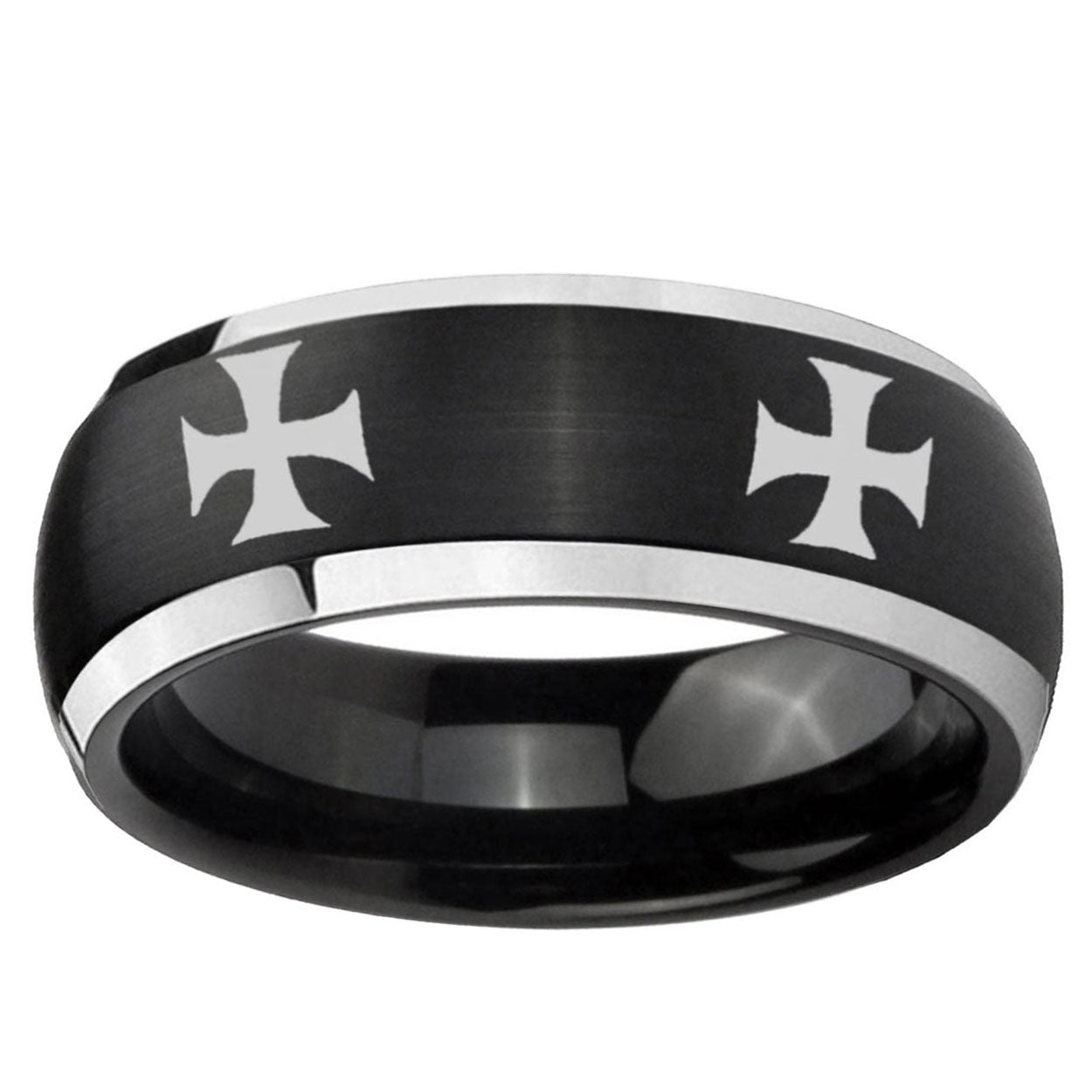 5, 8mm 4 Maltese Cross Dome Brushed Black 2 Tone Tungsten Personalized Ring