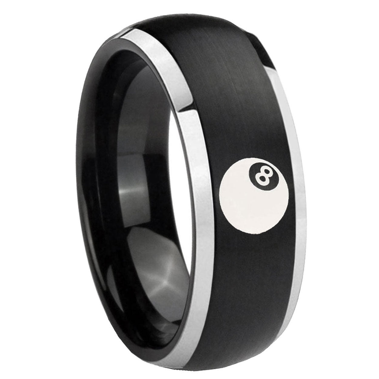 5, 8mm 8 Ball Dome Brushed Black 2 Tone Tungsten Carbide Men's Wedding Band