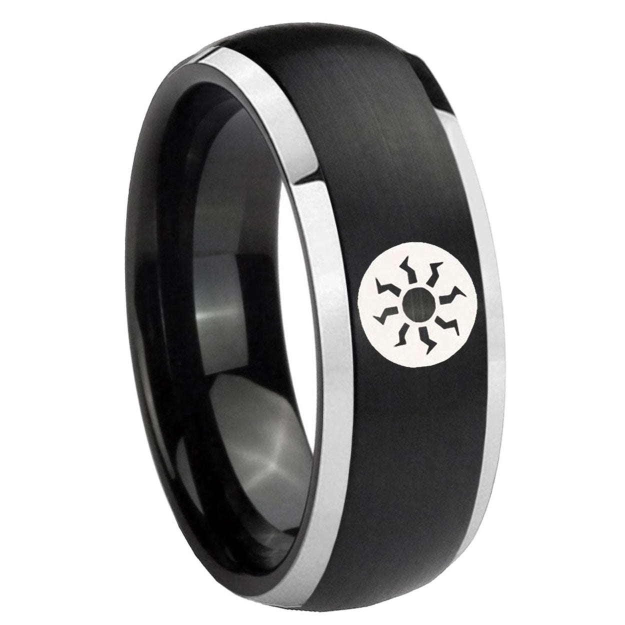 Intruding 5, 8mm Magic The Gathering Dome Brushed Black 2 Tone Tungsten Men's Wedding Ring . Offer in both 5mm and 8mm band width brushed black plated finished from size 4 to 14