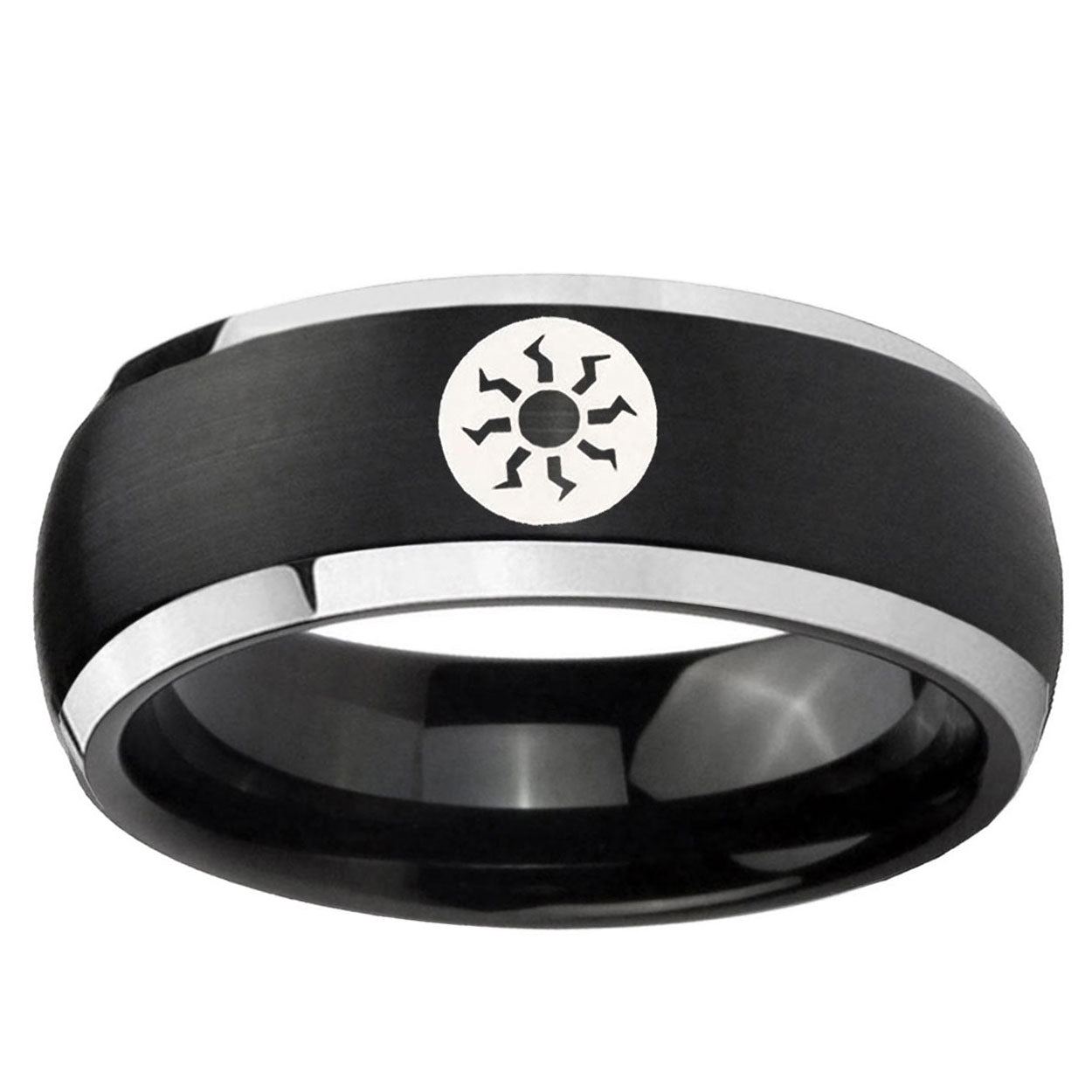 5, 8mm Magic The Gathering Dome Brushed Black 2 Tone Tungsten Men's Wedding Ring