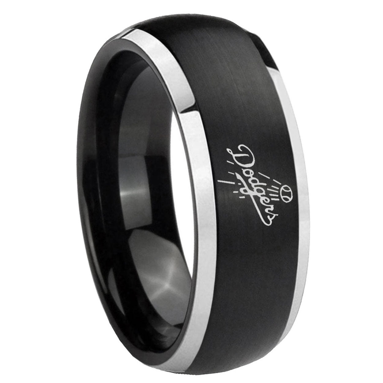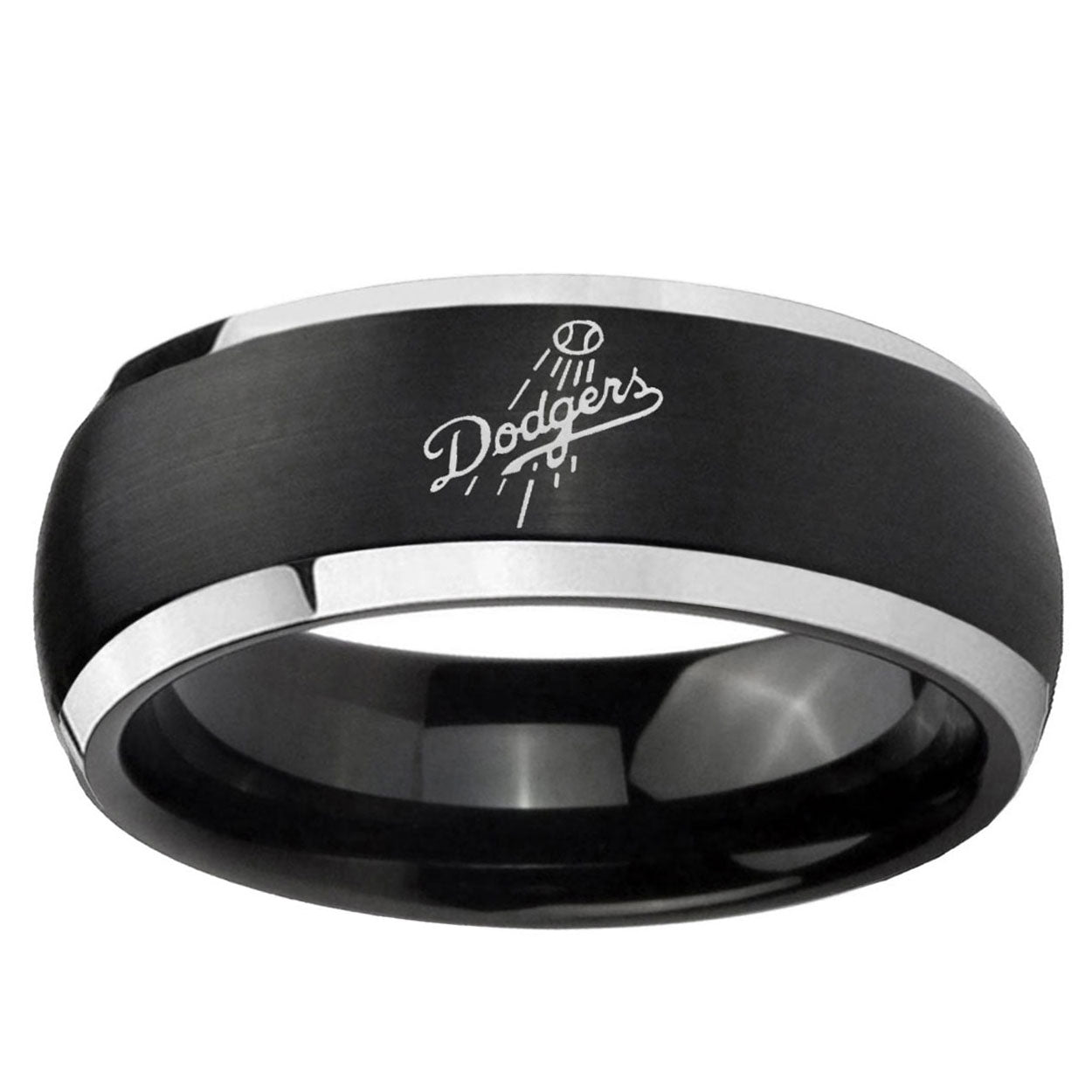 Intruding 5, 8mm LA Dogers MLB Baseball Dome Brushed Black 2 Tone Tungsten Mens Wedding Band . Offer in both 5mm and 8mm band width brushed black plated finished from size 4 to 14